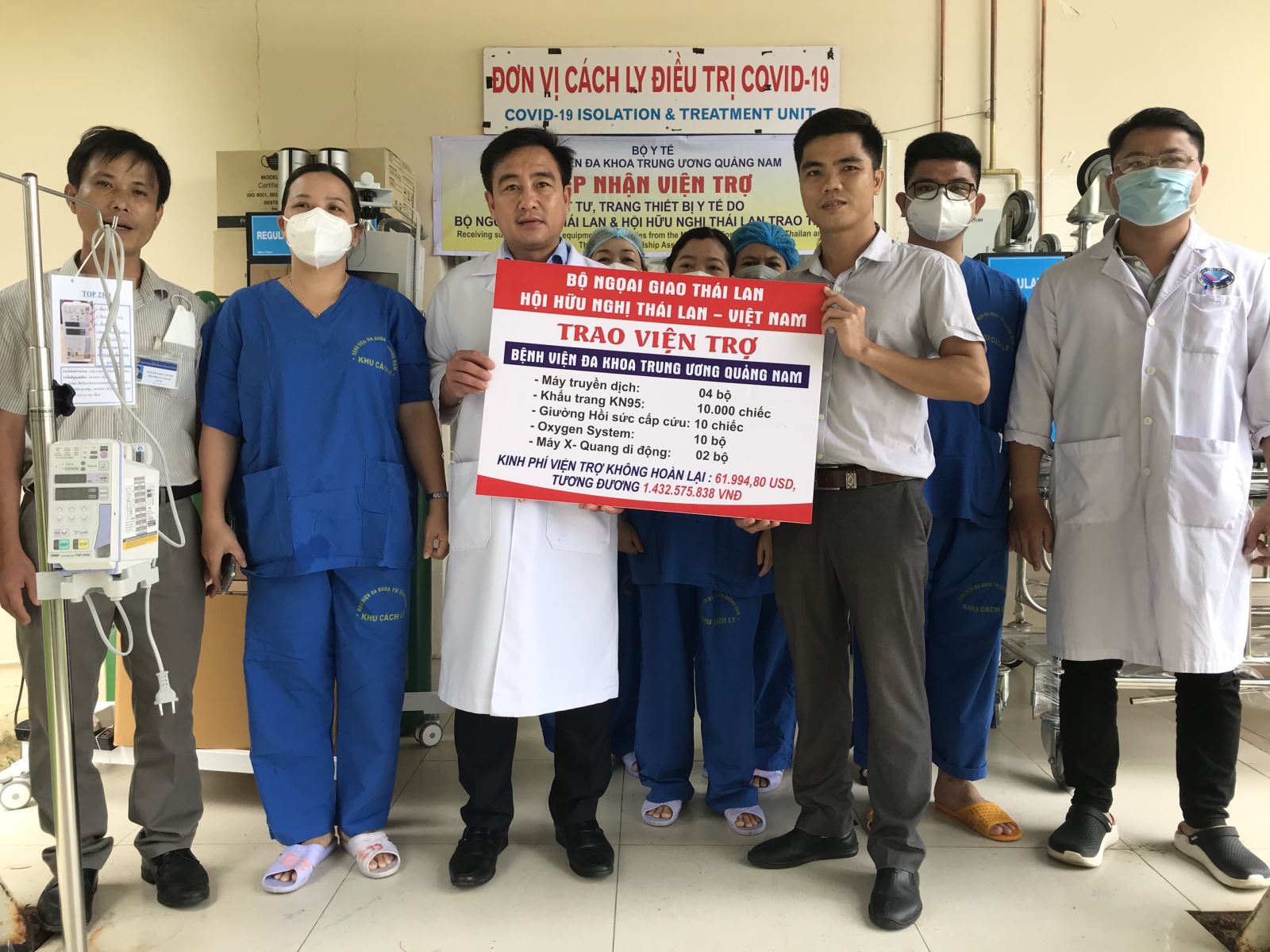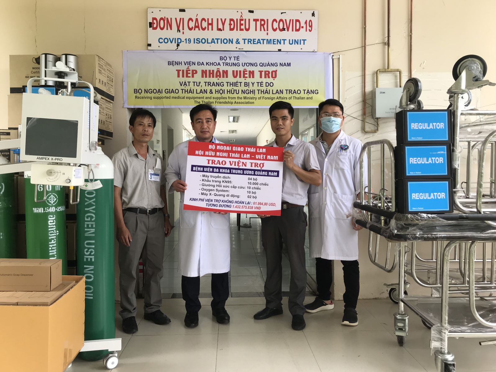 Tại Lễ trao tặng, Đại diện lãnh đạo Bênh viện Ths.Nguyễn Đình Hùng cảm ơn sự hỗ trợ quý báu và kịp thời của Chính phủ, Bộ Ngoại giao, Hội Hữu nghị Thái Lan-Việt Nam, nhân dân và doanh nghiệp Thái Lan dành cho Việt Nam nói chung và Bệnh viện ĐKTW Quảng Nam nói riêng. Ông khẳng định, số vật tư y tế này sẽ được sử dụng hiệu quả trong hoạt động chống dịch COVID-19 tại đơn vị.