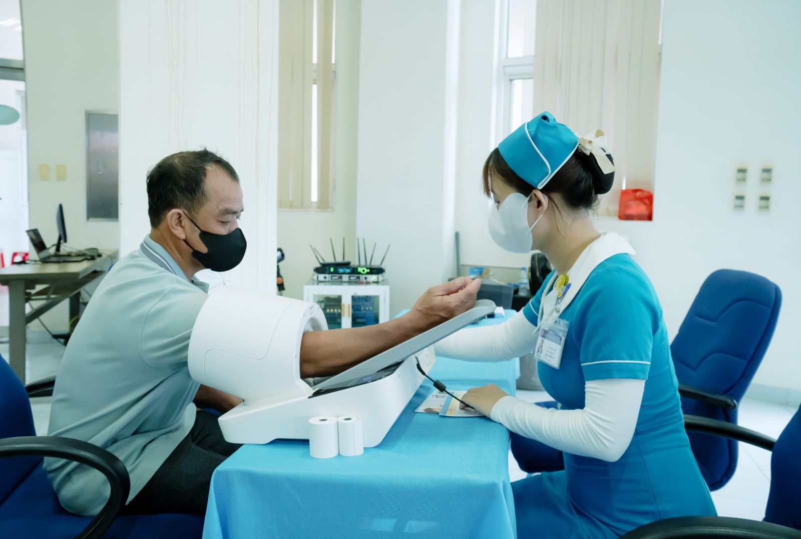 Chương trình khám được tổ chức tại hội trường lớn của bệnh viện, với sự chuẩn bị kỹ lưỡng từ nhân lực đến trang thiết bị hiện đại. Các nội dung khám bao gồm: đo huyết áp, siêu âm bụng tổng quát, siêu âm tuyến giáp, xét nghiệm máu, nước tiểu, đường huyết, chức năng gan, acid uric, điện tâm đồ... theo tiêu chuẩn y tế nghiêm ngặt.