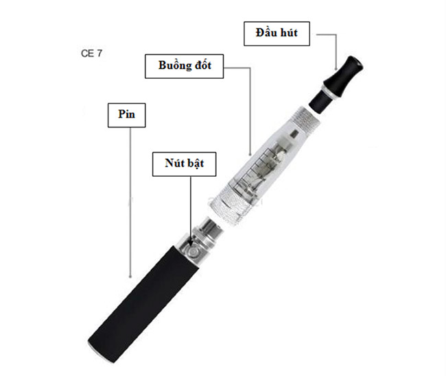 Cấu tạo thông dụng của thuốc lá điện tử.