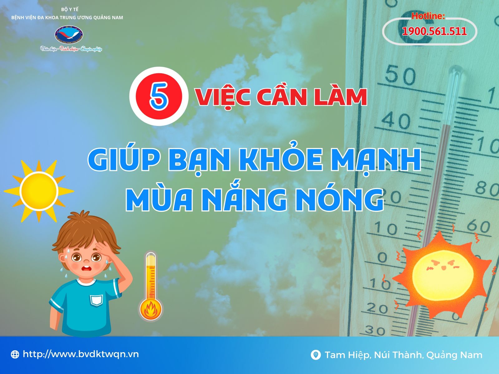 Mùa hè đã đến và đó là những ngày nắng nóng oi bức. Để cảm thấy thoải mái và giúp bạn duy trì sức khỏe trong mùa hè nắng nóng, Bệnh viện Đa khoa Trung ương Quảng Nam chia sẻ 05 việc bạn nên làm: