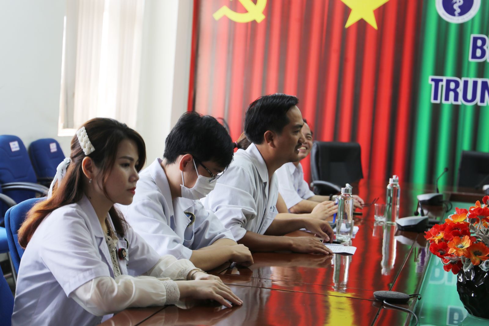 Tiếp đón có BSCKII.Nguyễn Đình Hùng - Giám đốc BV, các thành viên trong Ban giám đốc, đại diện lãnh đạo và bác sĩ các khoa Cấp cứu, khoa Hồi sức tích cực chống độc Bệnh viện ĐKTW Quảng Nam.