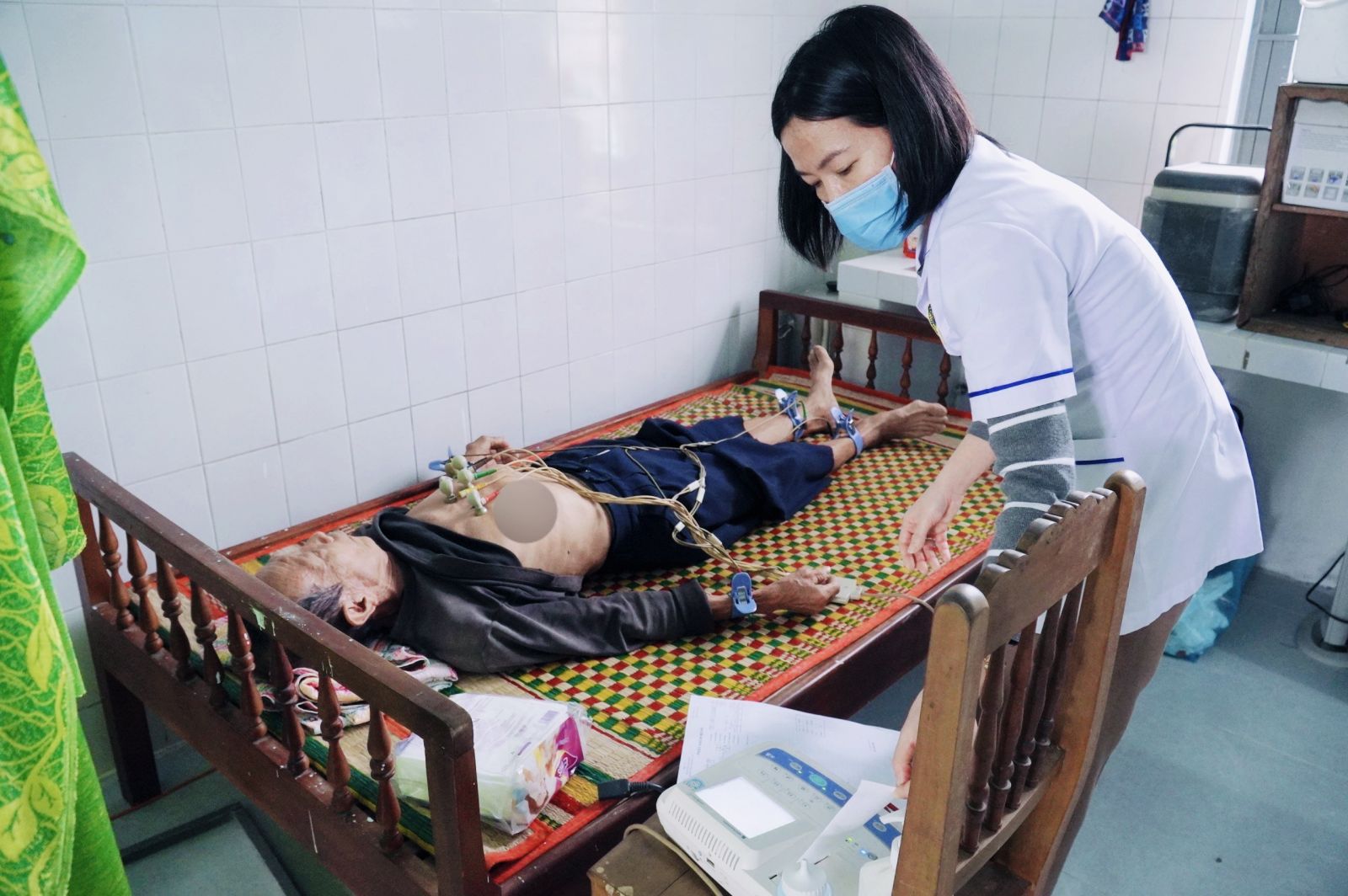Đo điện tim cho người lớn tuổi.