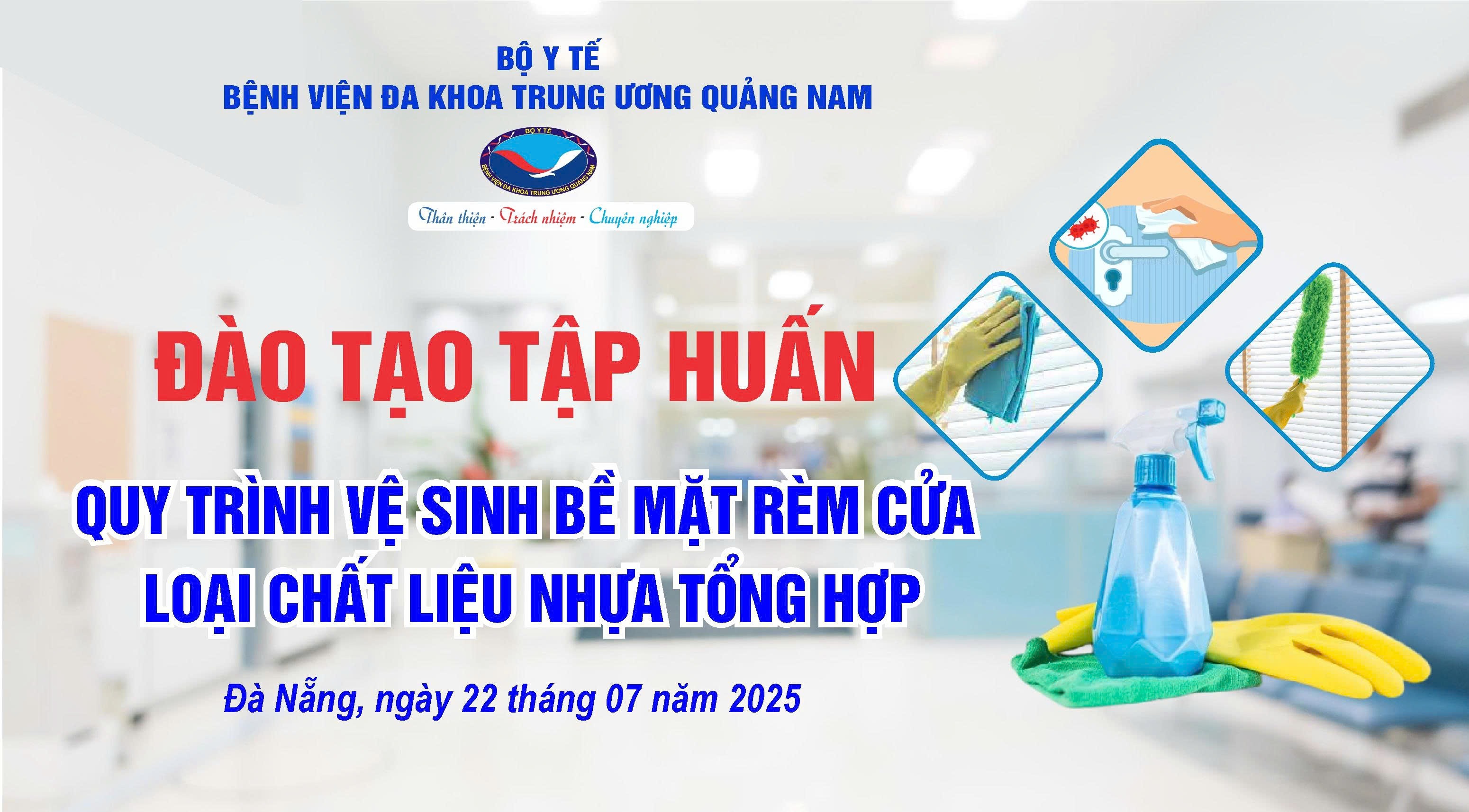 DKTWQN - Nhằm nâng cao chất lượng kiểm soát nhiễm khuẩn và đảm bảo môi trường sạch khuẩn, an toàn cho người bệnh và nhân viên y tế, chiều ngày 22/07/2025, Bệnh viện Đa Khoa Trung ương Quảng Nam đã tổ chức lớp đào tạo tập huấn với chuyên đề “Quy trình vệ sinh bề mặt rèm cửa chất liệu nhựa tổng hợp” dành cho các Hộ lý và nhân viên vệ sinh đang làm việc tại Bệnh viện.