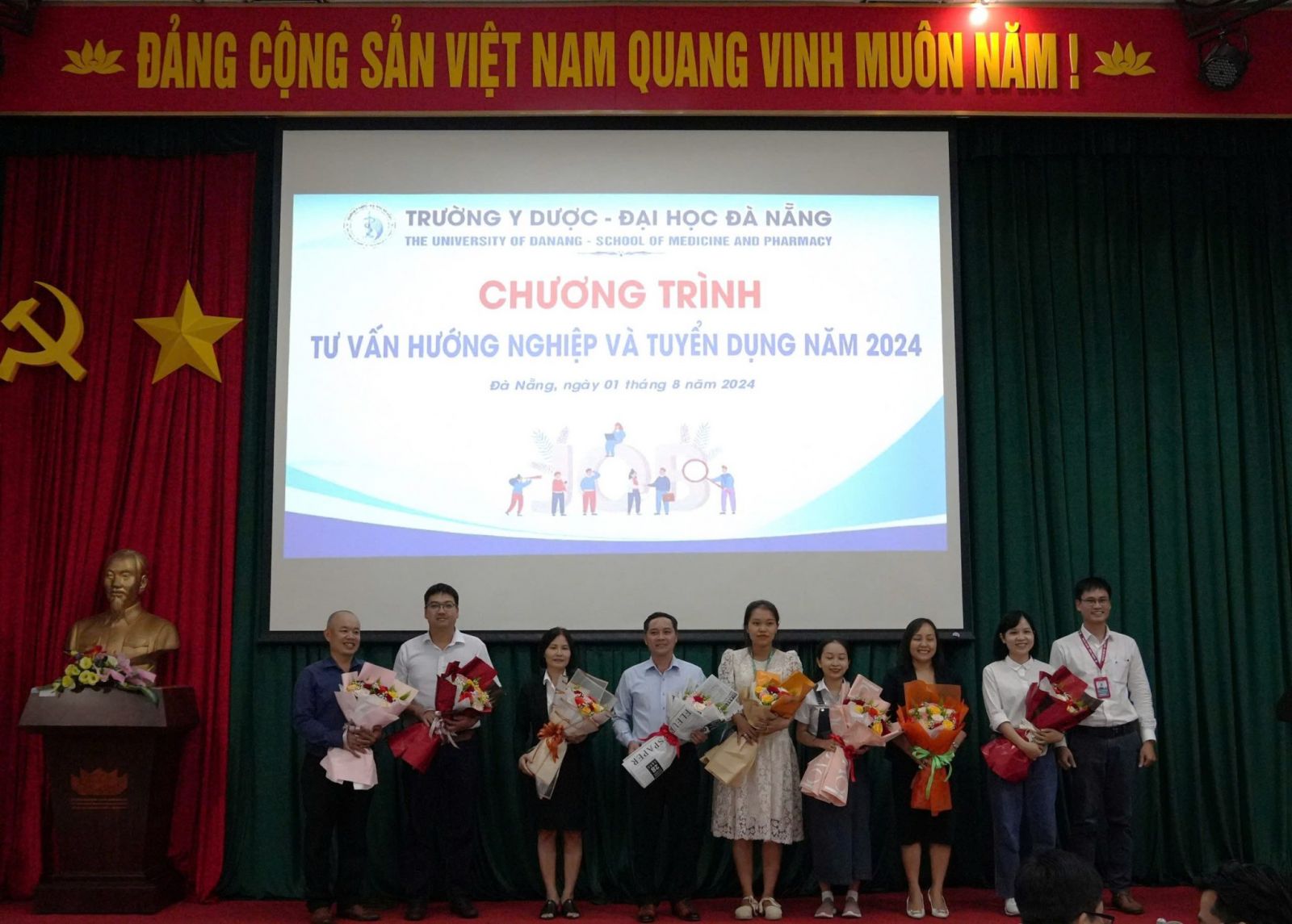 Chiều ngày 01/8, Trường Y Dược – Đại học Đà Nẵng (ĐHĐN) đã kết nối với các đơn vị bệnh viện và doanh nghiệp tổ chức chương trình Tư vấn hướng nghiệp và tuyển dụng năm 2024 cho các tân Bác sĩ, Dược sĩ, cử nhân Điều dưỡng tốt nghiệp và sinh viên năm cuối với hy vọng chia sẻ những kinh nghiệm, hỗ trợ sinh viên trong việc tìm kiếm cơ hội việc làm. Trong đó, Bệnh viện Đa khoa Trung ương vinh dự được mời góp mặt và tư vấn tuyển dụng cho các tân bác sĩ, Điều dưỡng.