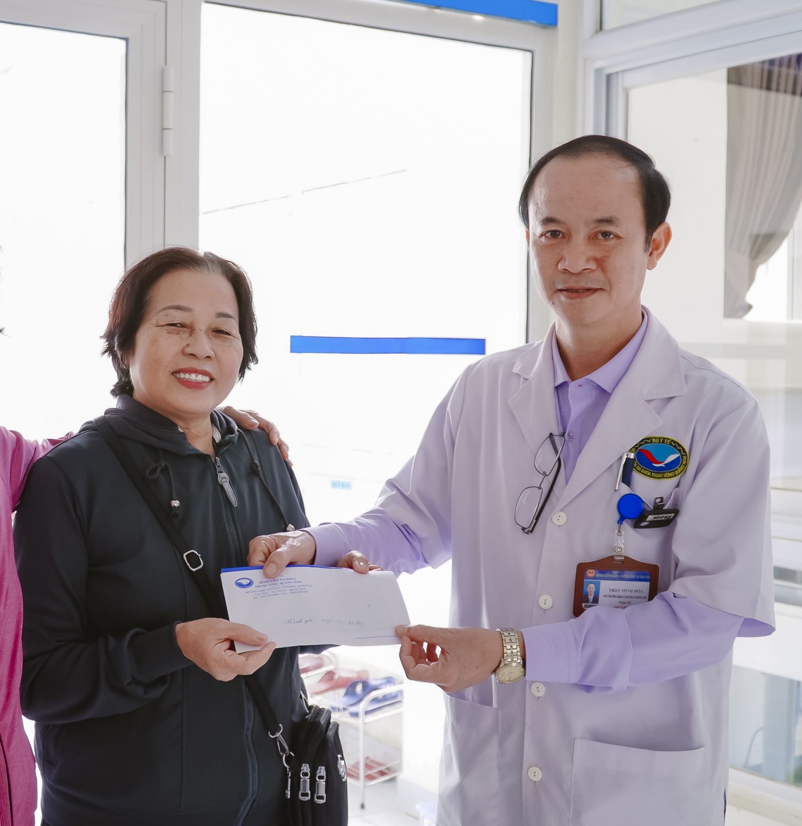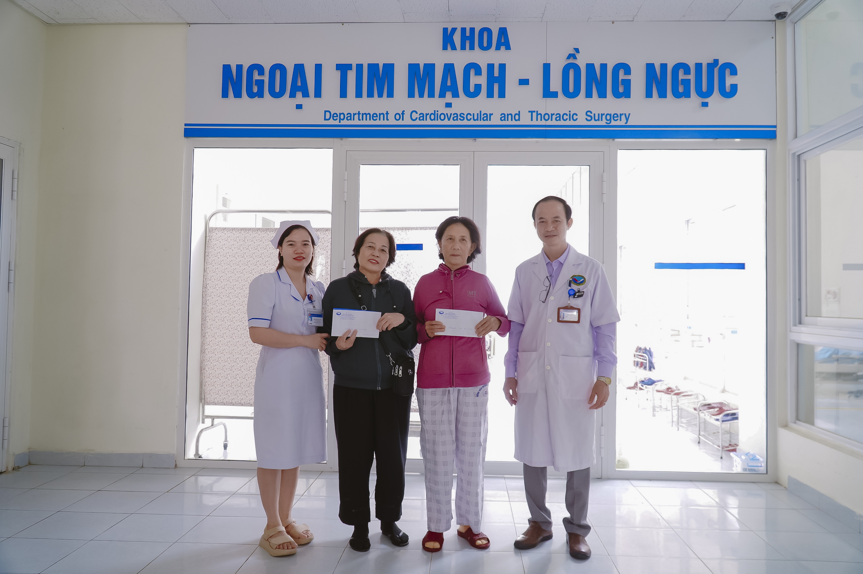 Nhằm động viên tinh thần và chúc mừng hai người bệnh phẫu thuật tim hở đầu tiên tại viện có sức khỏe tốt, nhân dịp hai cô đến tái khám, đại diện bệnh viện đã động viên, chia sẻ và trao tặng 2 món quà.