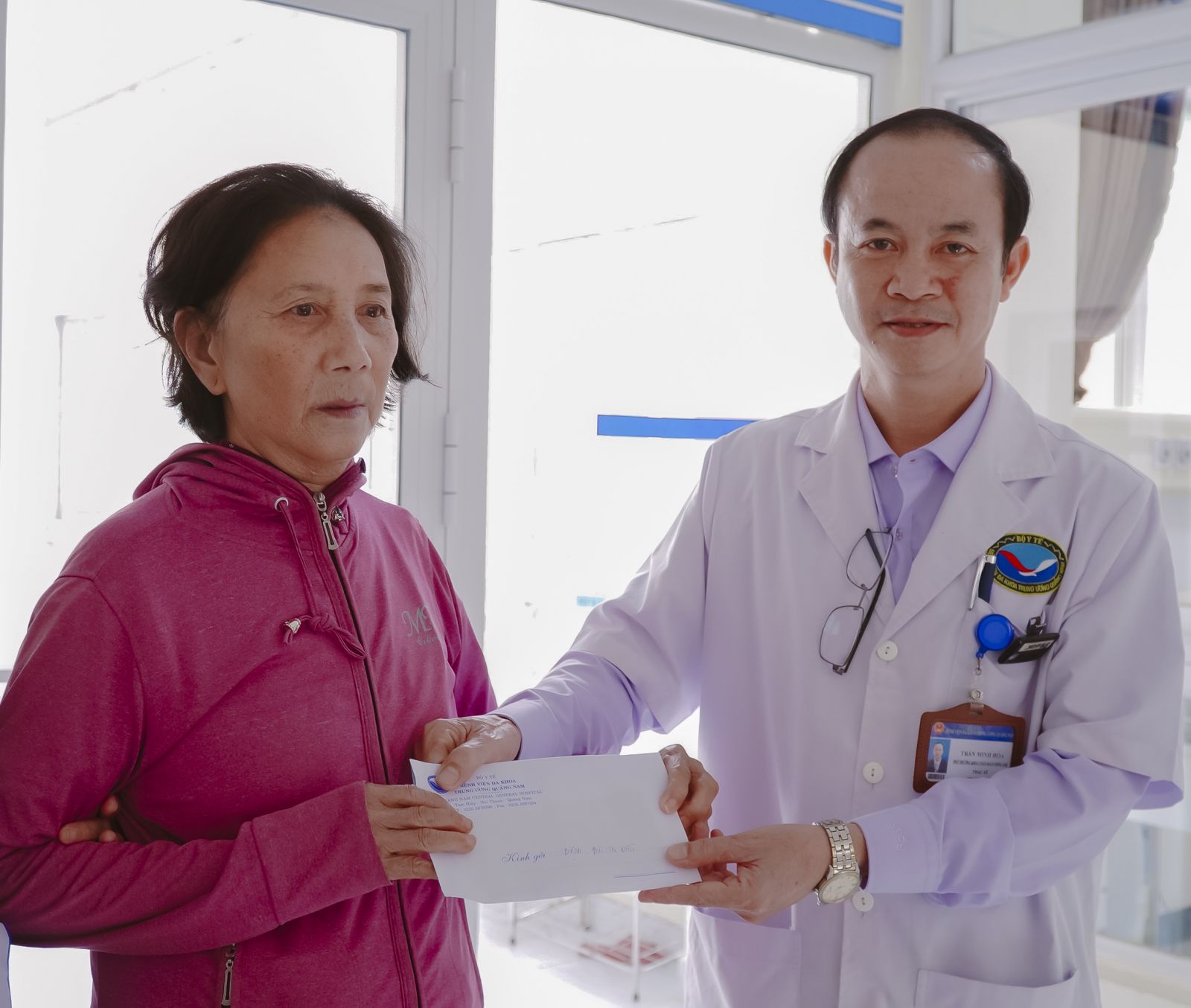 Bệnh viện ĐKTW Quảng Nam tặng quà động viên sức khỏe cho 2 người bệnh phẫu thuật tim hở đầu tiên tại viện trong lần tái khám