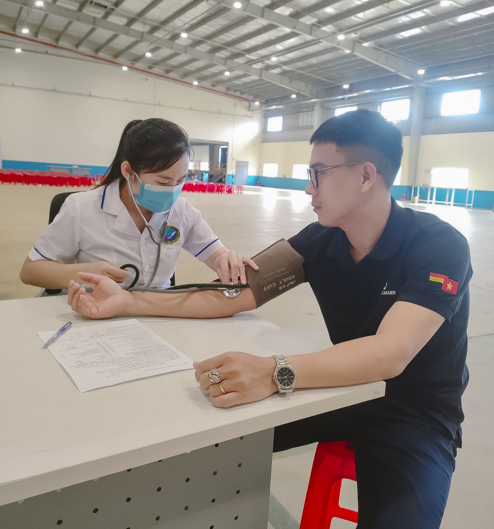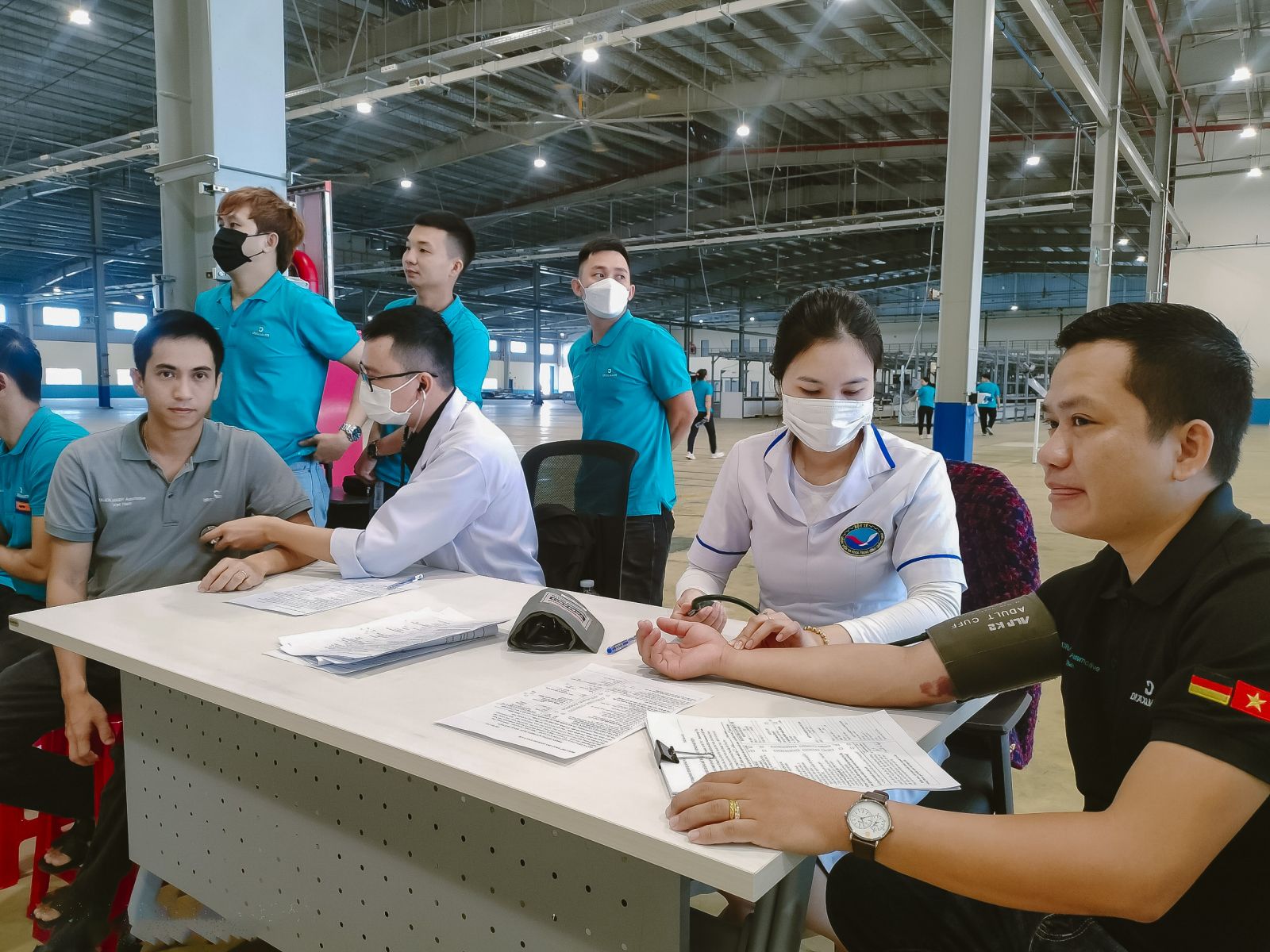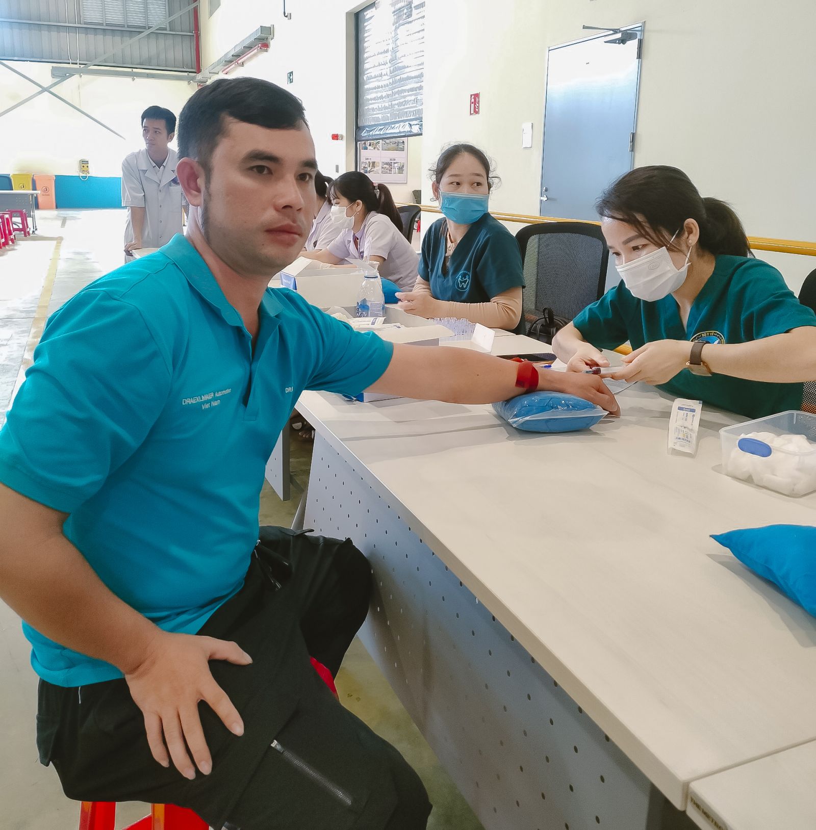 Người lao động của Công ty Draexlmaier Automotive Việt Nam đang thực hiện hiến máu.