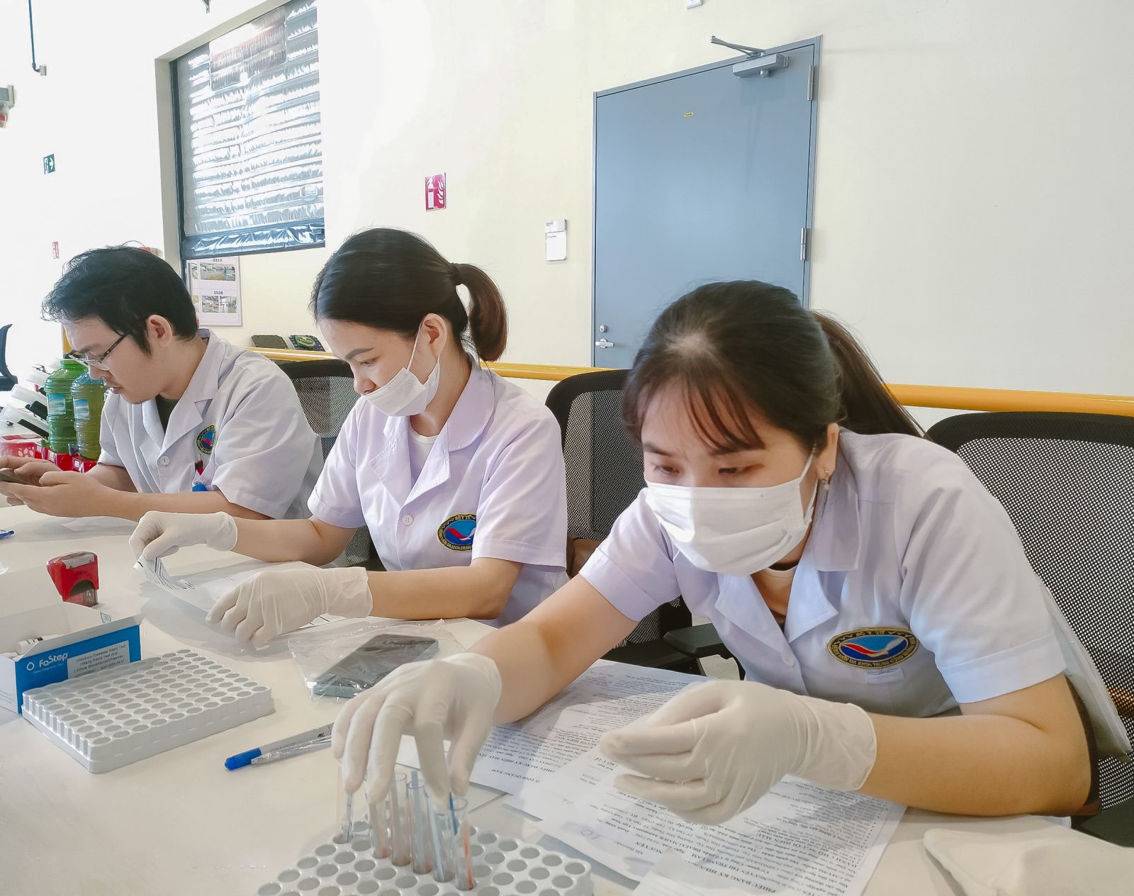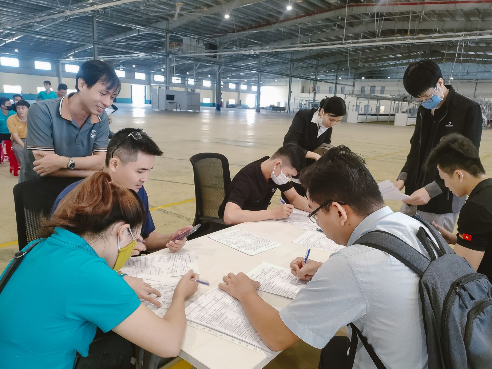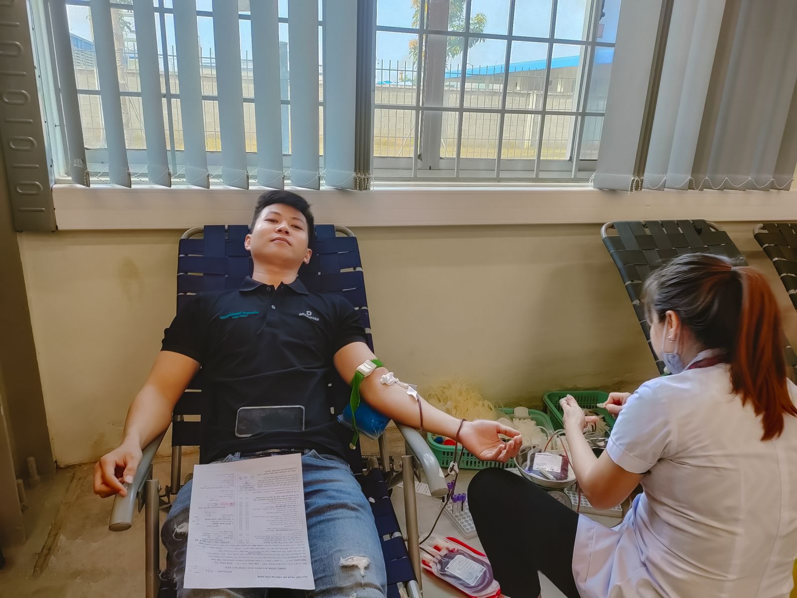 Người lao động của Công ty Draexlmaier Automotive Việt Nam đang thực hiện hiến máu.