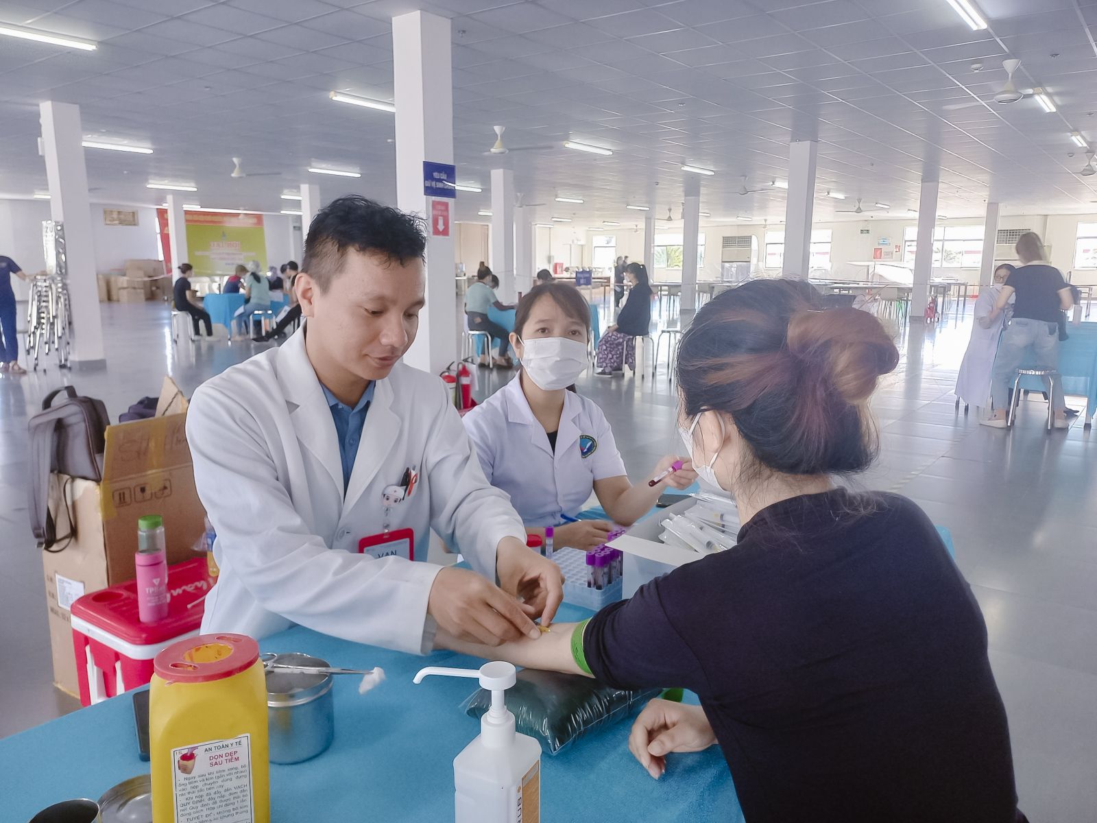 Toàn cảnh khám, kiểm tra sức khỏe cho khoảng 2410 cán bộ nhân viên ngay tại công ty.