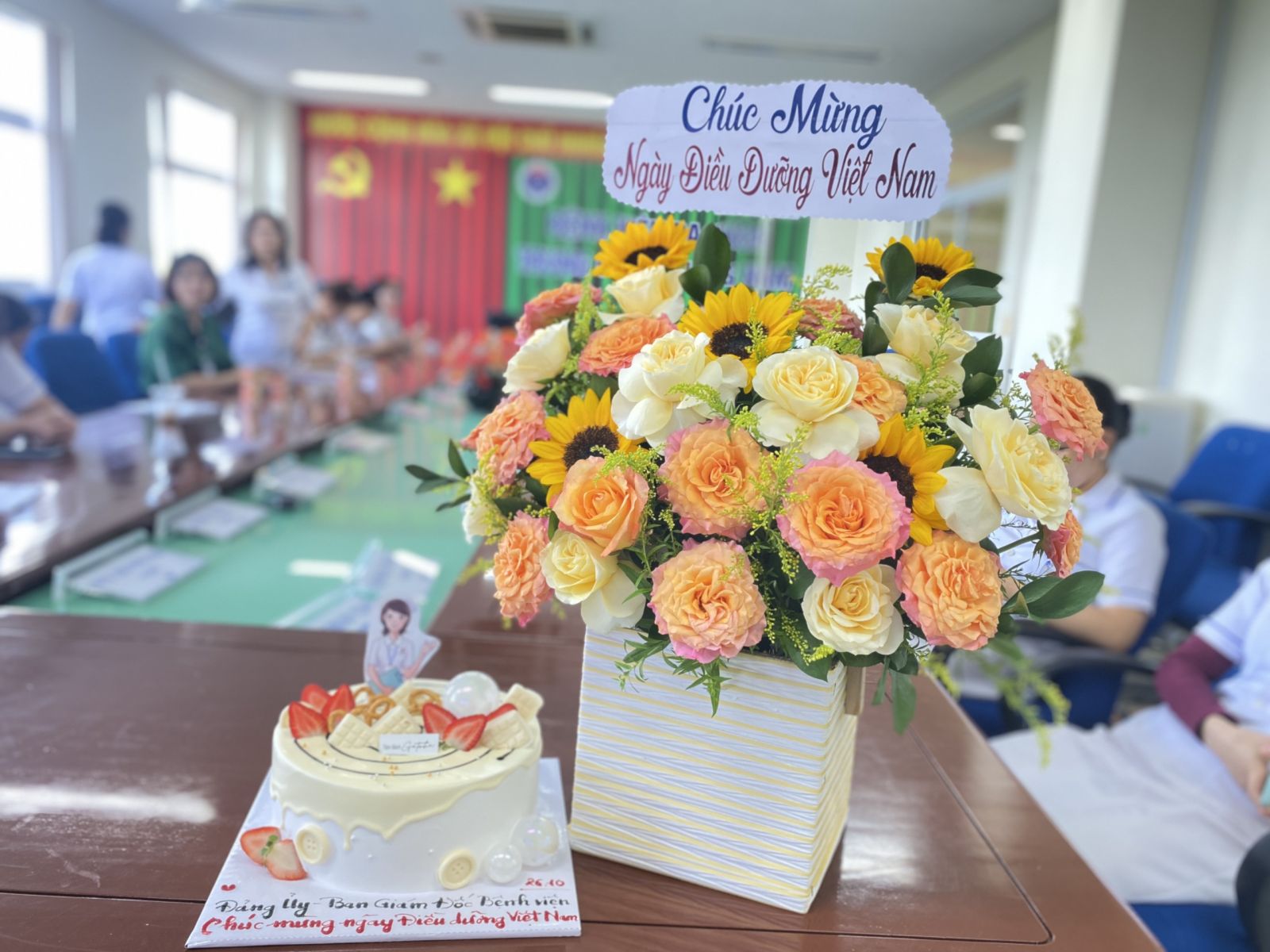 Đại diện Đảng uỷ - Ban Giám đốc Bệnh viện đã gửi lẵng hoa và bánh chúc mừng Ngày điều dưỡng Việt Nam.