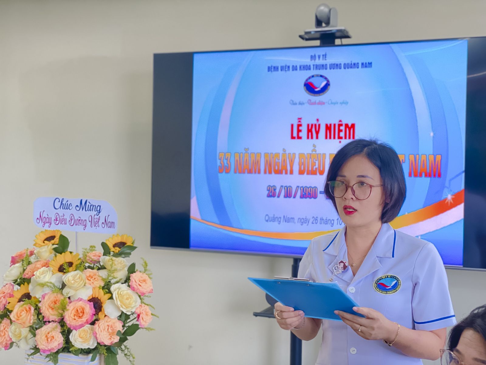 Nhân ngày Điều dưỡng Việt Nam (26/10/1990 - 26/10/2023), sáng nay ngày 26/10 Bệnh viện Đa khoa Trung ương Quảng Nam đã tổ chức lễ kỷ niệm 33 năm nhằm tôn vinh những người lao động, viên chức theo nghề cao quý của ngành Y, người làm công việc chăm sóc sức khỏe hằng ngày giúp người bệnh mau chóng bình phục – Điều dưỡng.