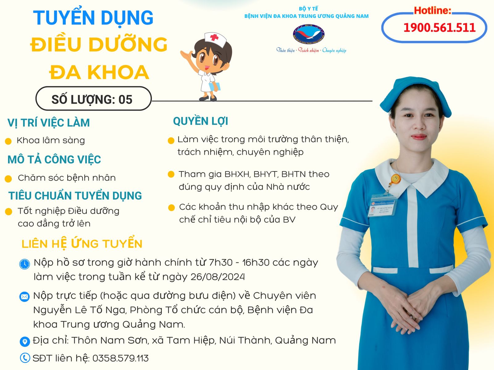 Bệnh viện ĐKTW Quảng Nam tuyển dụng nhân sự Điều dưỡng Đa khoa