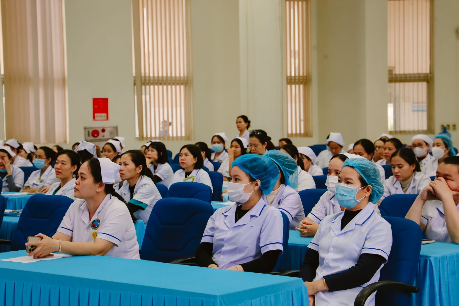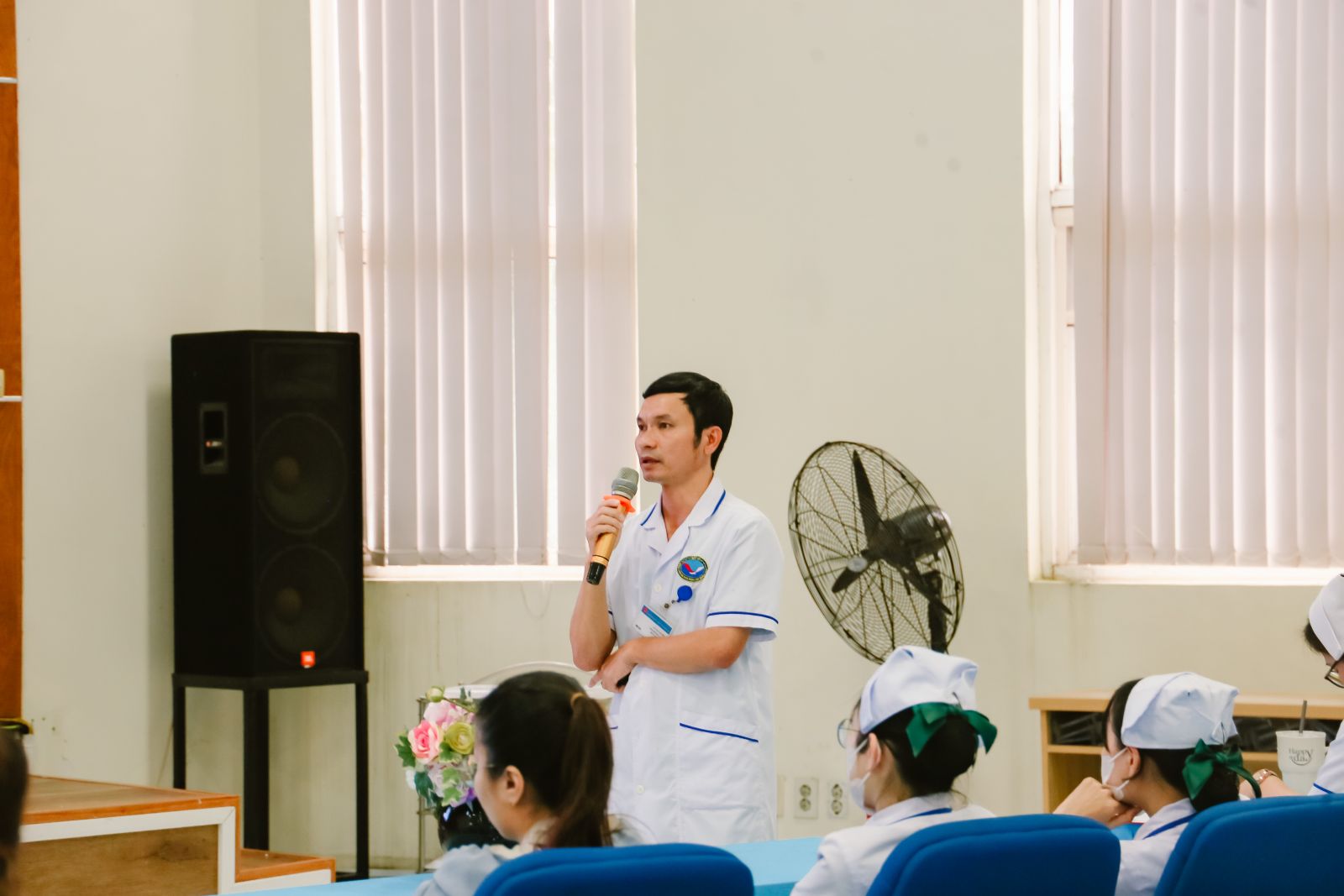 Buổi sinh hoạt do CN. Huỳnh Thị Tư, Phó Trưởng phòng Điều dưỡng chủ trì. Khoảng 90 điều dưỡng, hộ sinh và kỹ thuật viên từ các khoa lâm sàng tham dự.