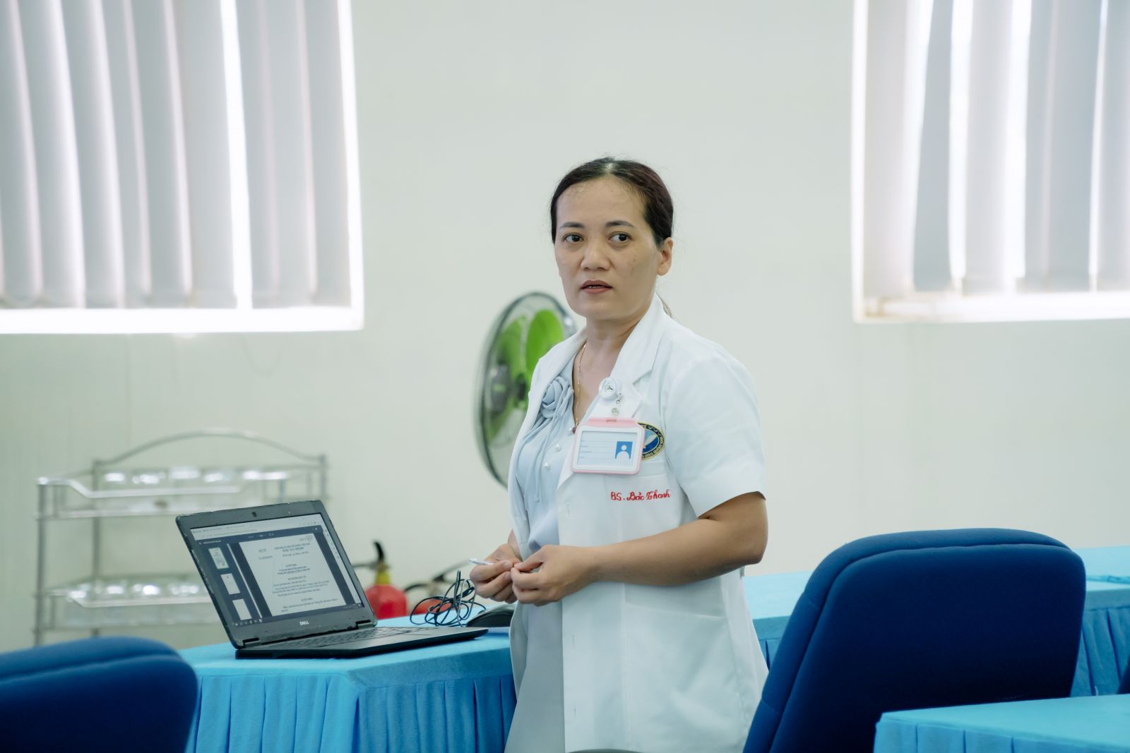 BSCKII. Lý Vũ Thị Bảo Thanh - Trưởng Khoa Nhi chia sẻ tại buổi tập huấn.