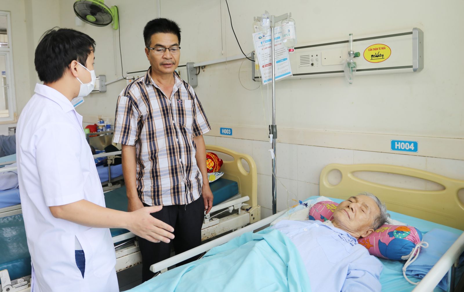 BS.Tô Ngọc Hùng đang trao đổi với người nhà trước khi cho bệnh nhân xuất viện