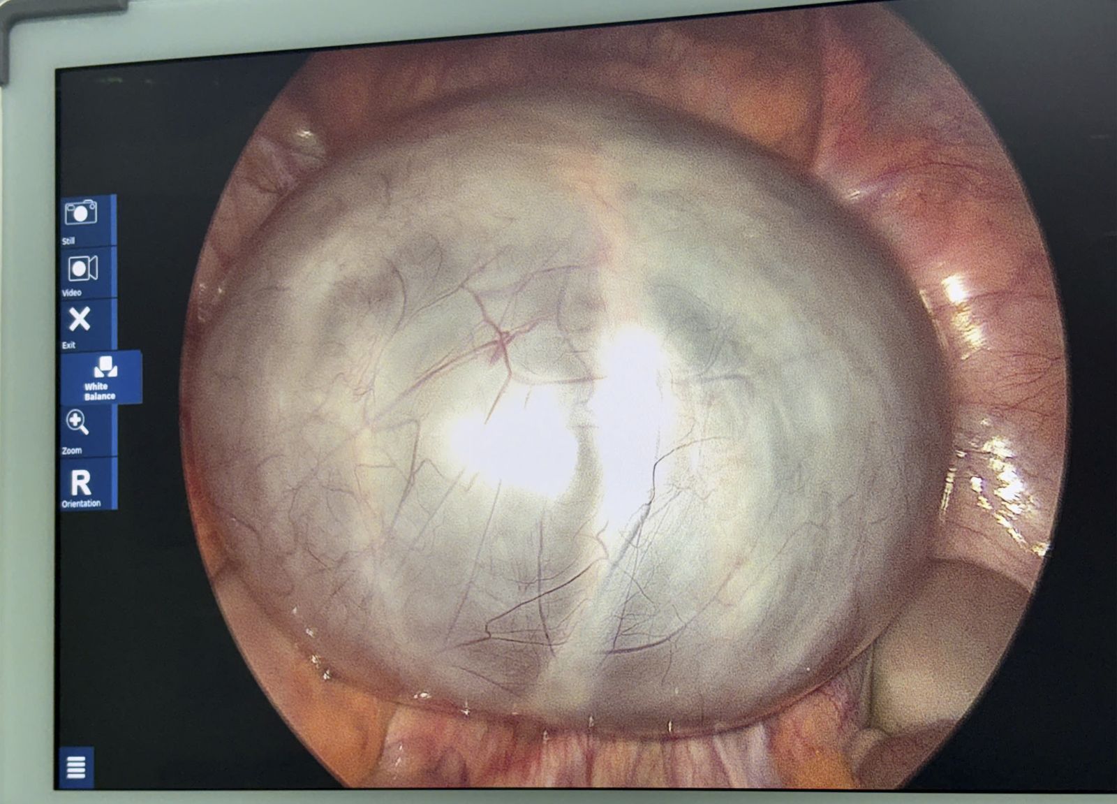 Hình ảnh u buồng trứng kích thước lớn qua camera nội soi.