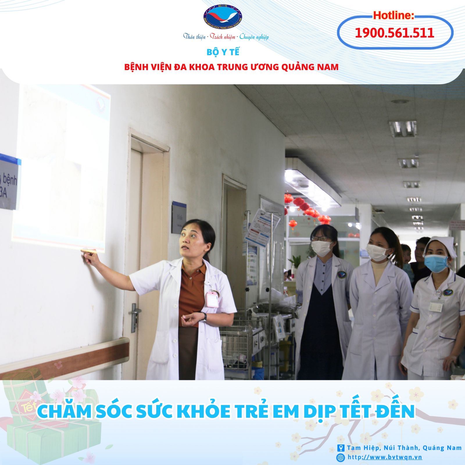Để nhận được tư vấn và thăm khám tại Bệnh viện Đa khoa Trung ương Quảng Nam, quý khách có thể nhanh chóng đặt hẹn qua hotline: 1900 561511.