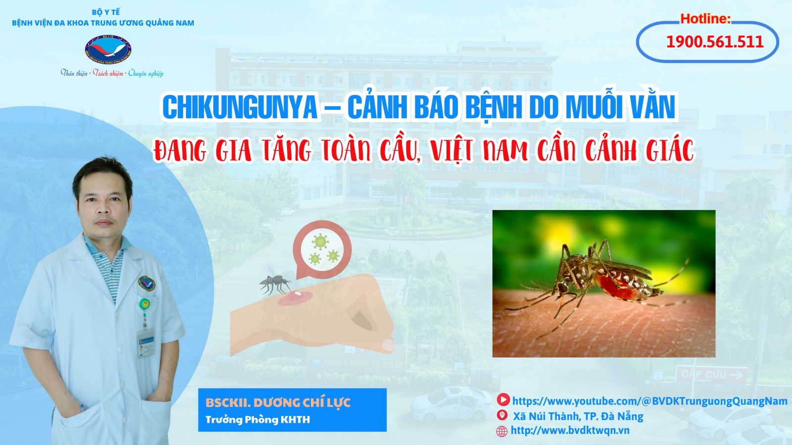 BVDKTWQNO - Từ đầu năm đến tháng 7/2025, thế giới ghi nhận hơn 240.000 ca Chikungunya và 90 ca tử vong. Dù Việt Nam chưa có ca bệnh trong cộng đồng, mùa mưa và du lịch cao điểm khiến nguy cơ xâm nhập hiện hữu. Bệnh viện Đa khoa Trung ương Quảng Nam khuyến cáo người dân chủ động phòng ngừa. Mời quý độc giả đến với chia sẻ chuyên môn của BSKII. Dương Chí Lực - Trưởng phòng KHTH về chủ đề: "Chikungunya – Cảnh báo bệnh do muỗi vằn đang gia tăng toàn cầu, Việt Nam cần cảnh giác".