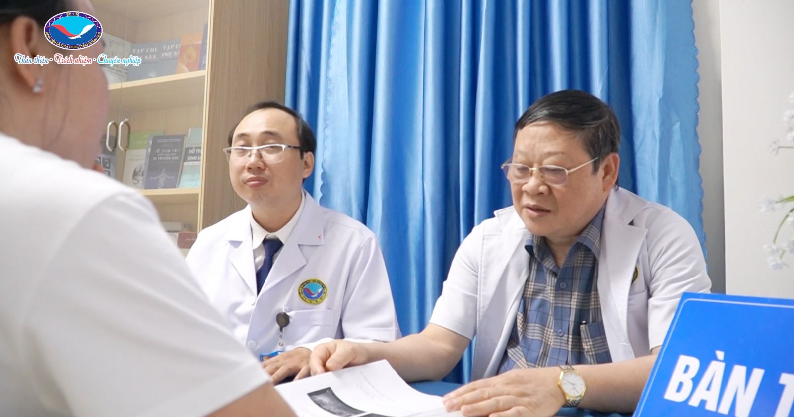 AHLĐ.Nhà giáo Nhân dân.GS.TS.BS Nguyễn Viết Tiến khám và tư vấn cho cặp vợ chồng hiếm muộn tại Đơn vị Hỗ trợ sinh sản, Khoa Sản, Bệnh viện Đa khoa Trung ương Quảng Nam.