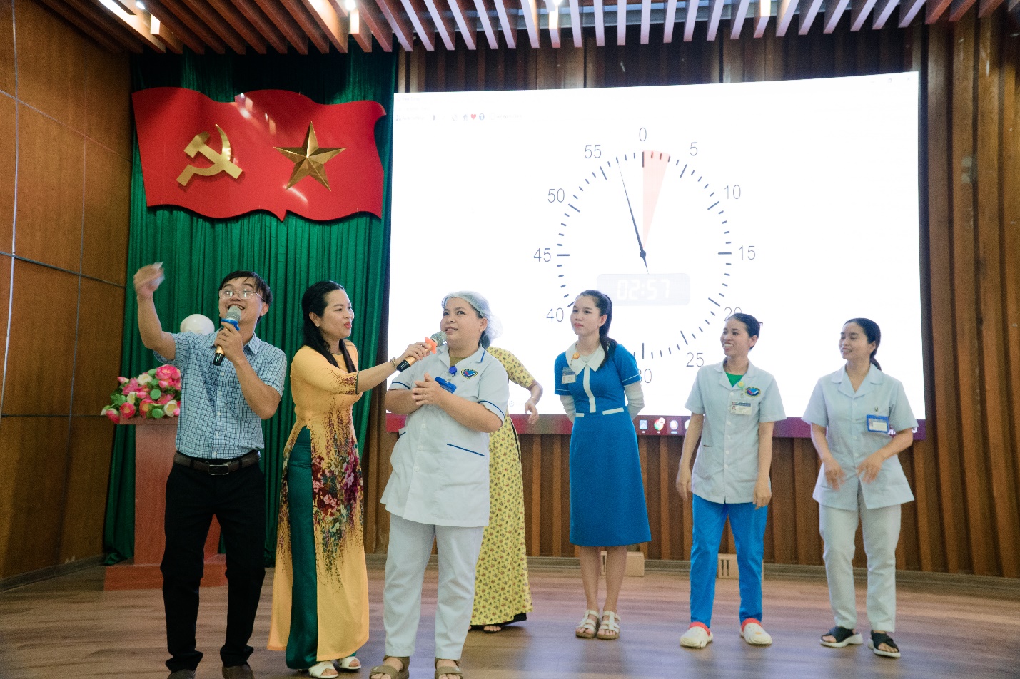 DSCKII. Lương Tấn Đức – Phó Giám đốc Bệnh viện tặng hoa cho Ban nữ công của Bệnh viện.