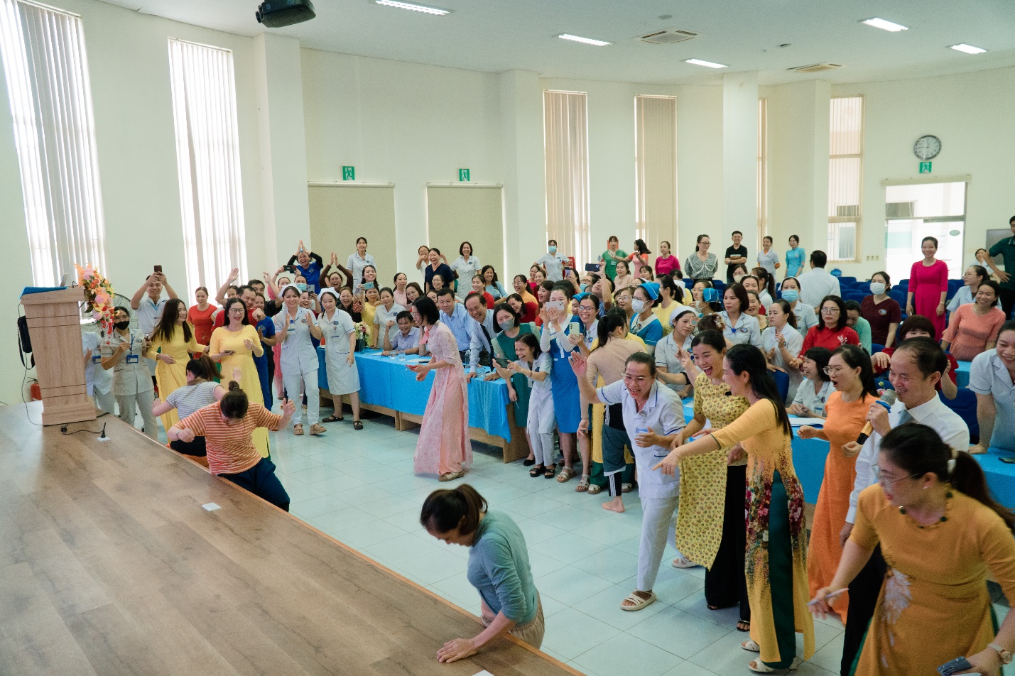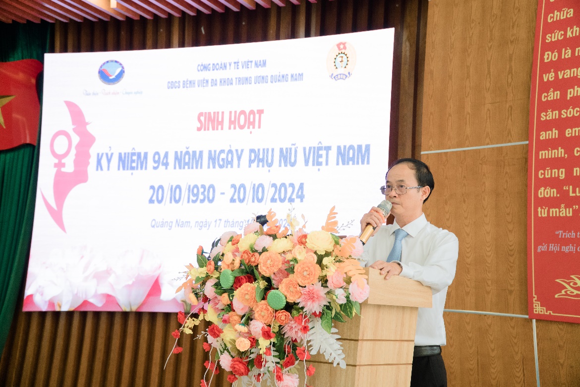 Phát biểu chào mừng lễ kỷ niệm, ThS. Trần Minh Hoà – Chủ tịch Công đoàn Bệnh viện chia sẻ: “Trong bệnh viện chúng ta, các chị em đã và đang là nguồn cảm hứng. Họ góp phần xây dựng một môi trường làm việc đầy sáng tạo, thân thiện và chuyên nghiệp. Ở gia đình, các bạn là những người mẹ, người vợ tận tâm, luôn chu đáo chăm sóc hạnh phúc của gia đình. Những đóng góp ấy thật đáng quý biết bao”…
