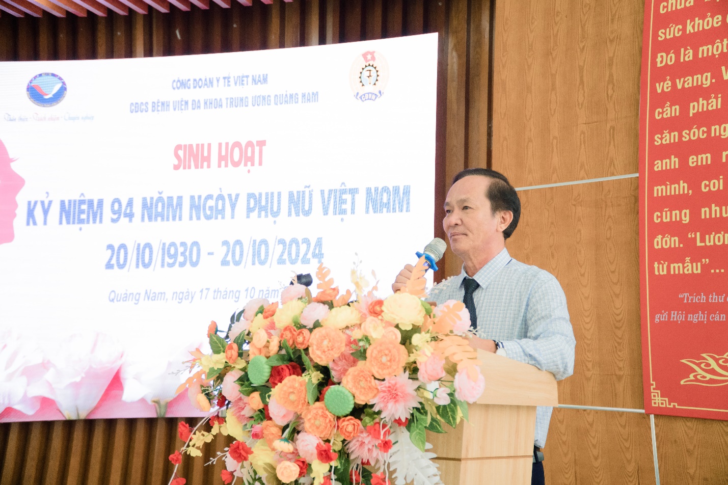 Phát biểu chúc mừng Ngày Phụ nữ Việt Nam 201/10 tại Lễ kỷ niệm của DSCKII. Lương Tấn Đức – Phó Giám đốc Bệnh viện.