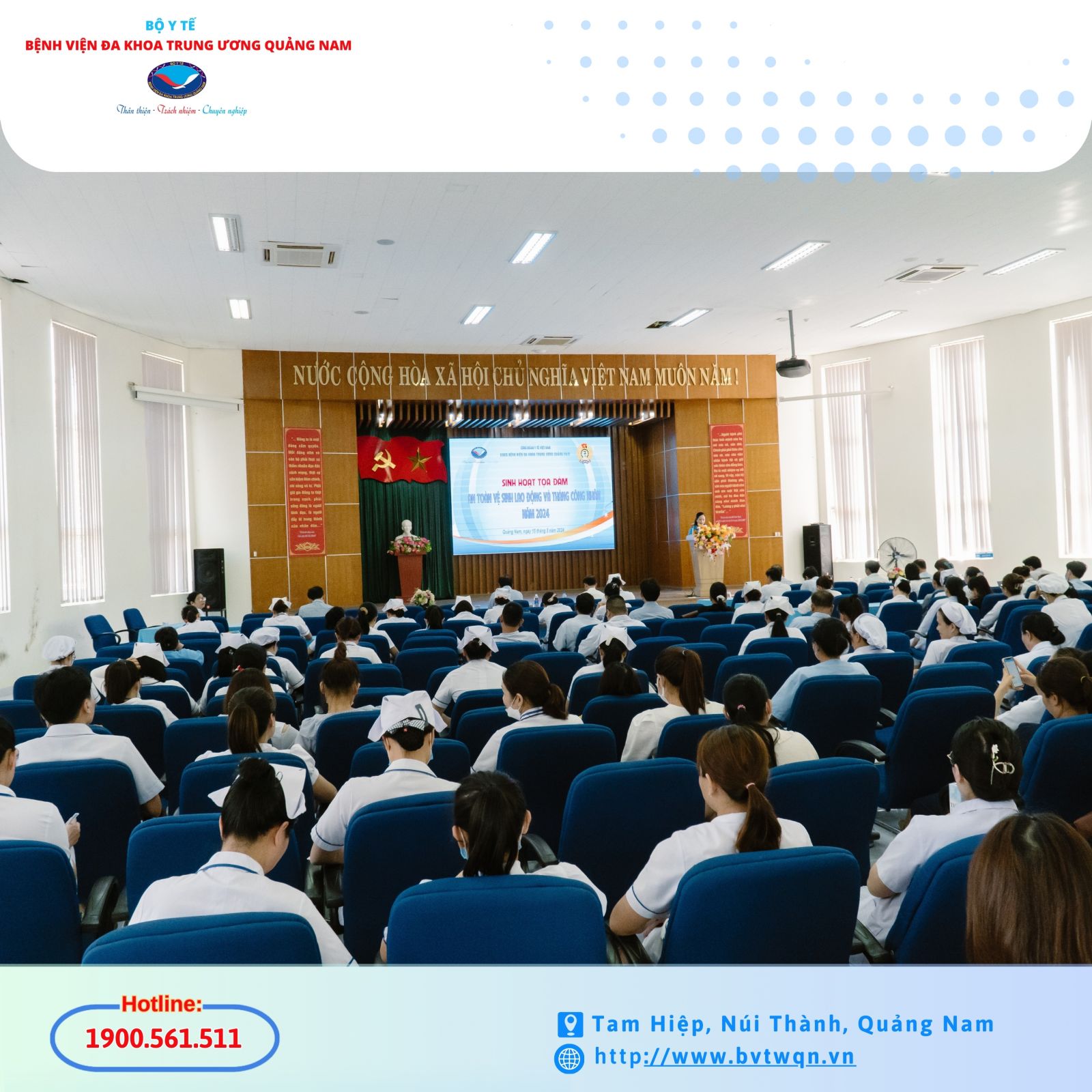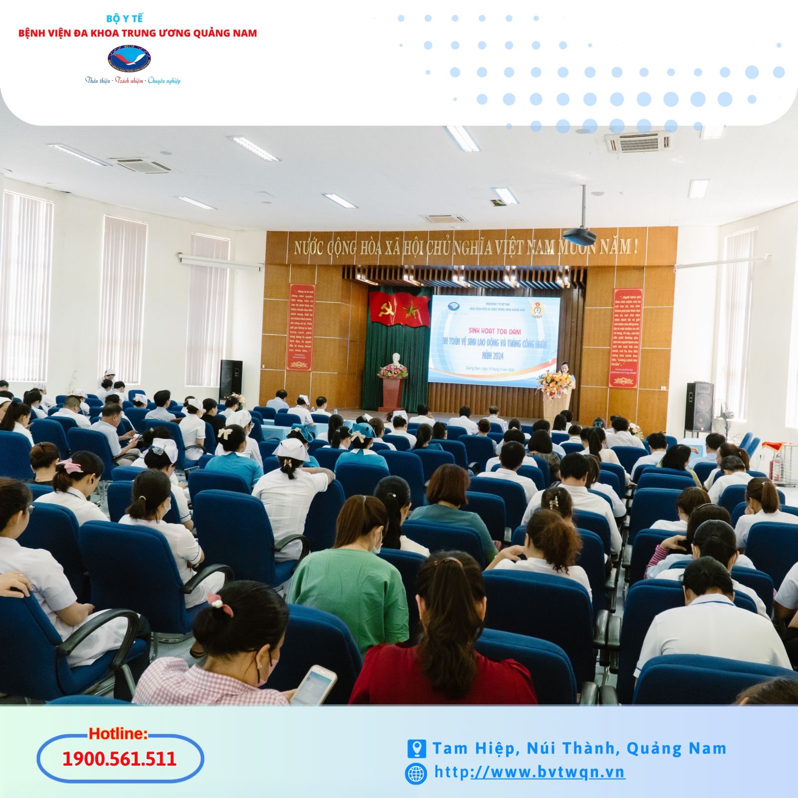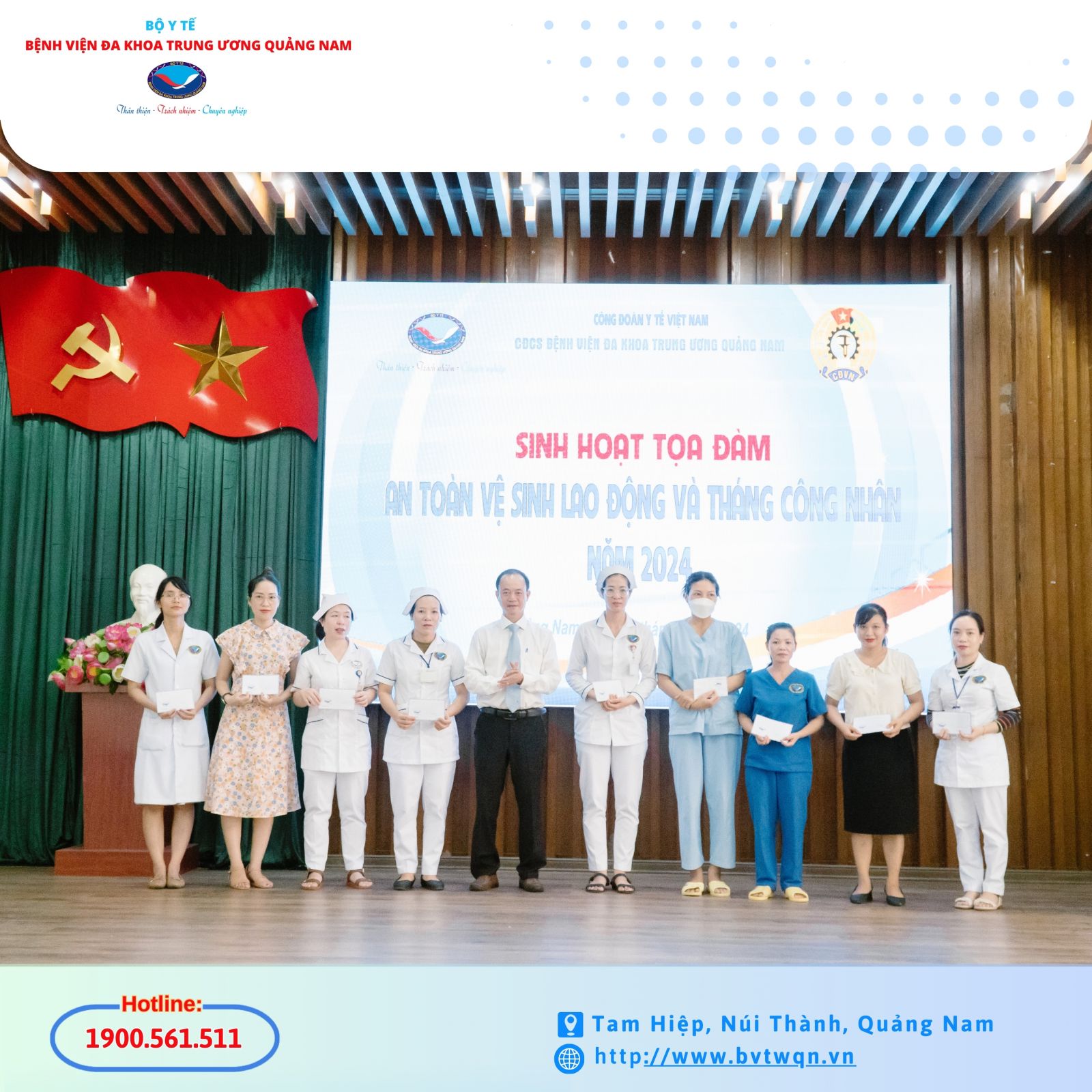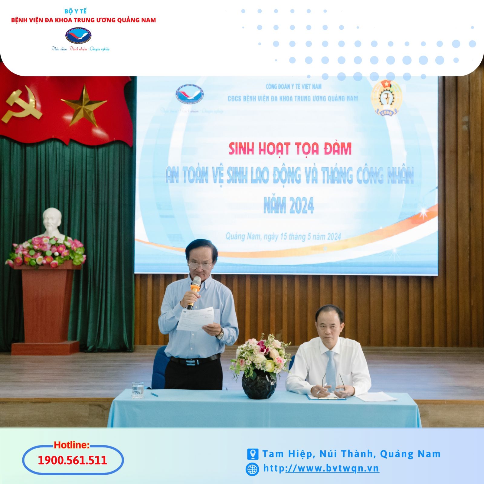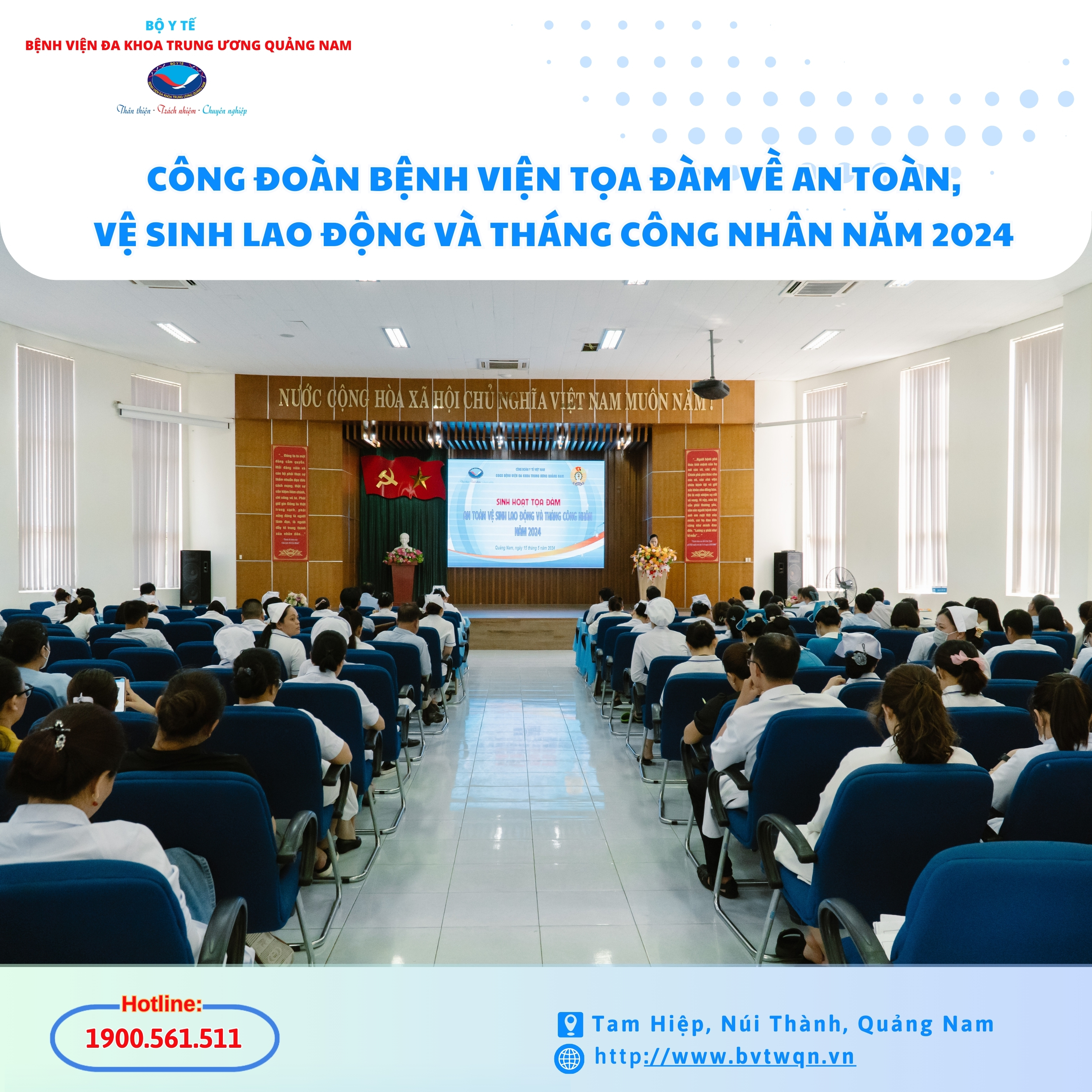 Hòa chung không khí phát động Tháng Công nhân, Tháng An toàn vệ sinh lao động năm 2024 của Ngành Y tế. Chiều 15/5, Công đoàn cơ sở Bệnh viện Đa khoa Trung ương Quảng Nam tổ chức Tọa đàm về An toàn, vệ sinh lao động và tháng công nhân năm 2024.