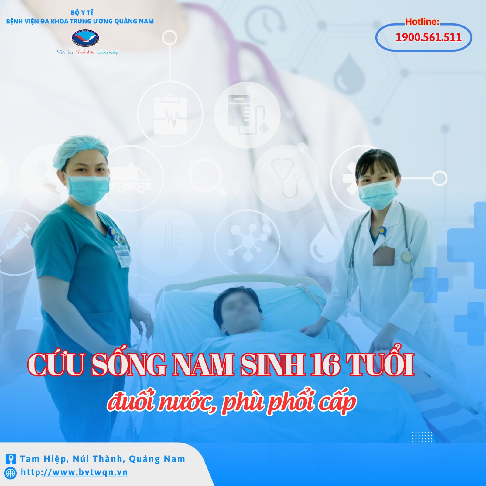 Bệnh viện Đa khoa Trung ương Quảng Nam vừa qua đã cấp cứu thành công một trường hợp đuối nước nguy kịch là em L.A.T. (16 tuổi, trú tại thị trấn Núi Thành, huyện Núi Thành, tỉnh Quảng Nam).