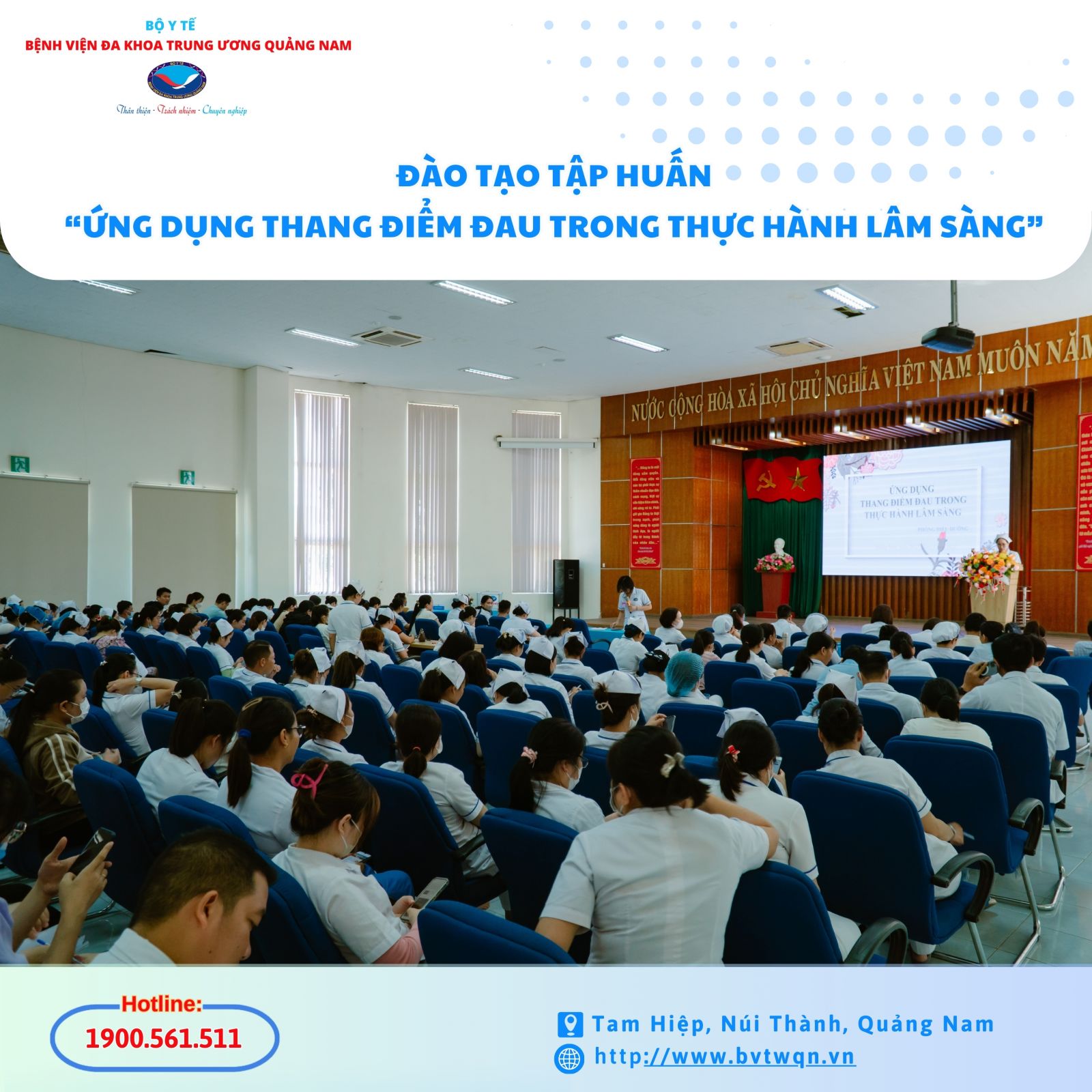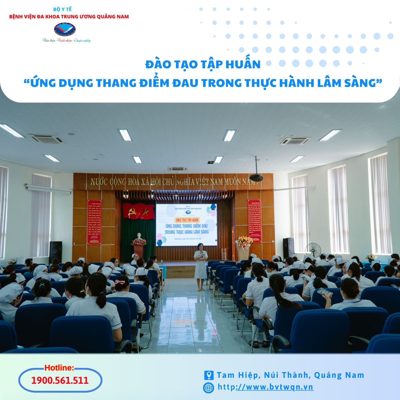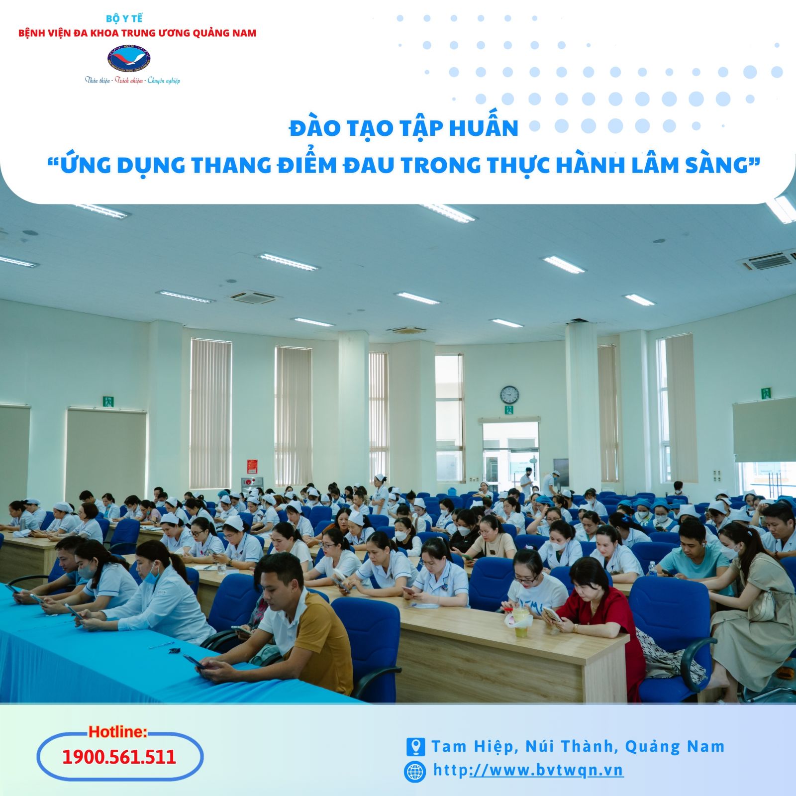 Trong 2 ngày 26-27/6, Phòng Điều dưỡng, Bệnh viện Đa khoa Trung ương Quảng Nam tổ chức đào tạo tập huấn “Ứng dụng thang điểm đau trong thực hành lâm sàng” cho hơn 200 học viên là Điều dưỡng, Hộ sinh, Kỹ thuật viên các khoa lâm sàng trong toàn viện.