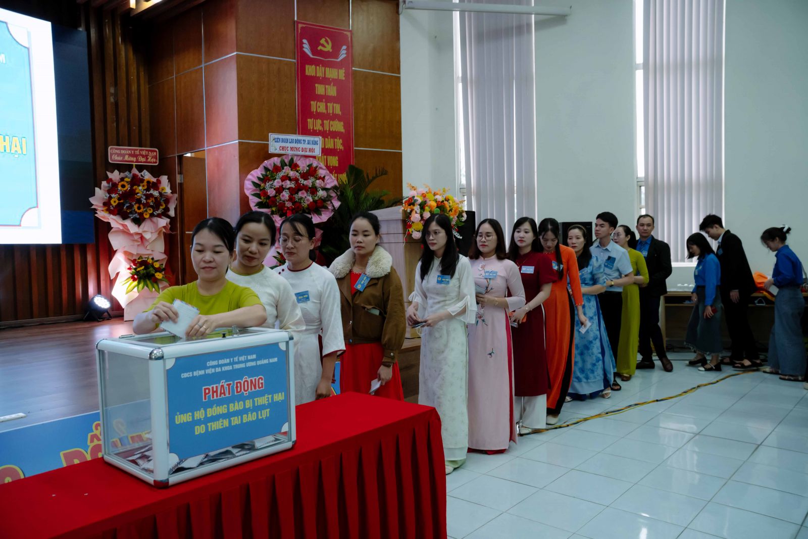 Trong khuôn khổ Đại hội, Công đoàn Bệnh viện cũng phát động chương trình ủng hộ đồng bào bị thiệt hại do thiên tai, bão lụt, nhận được sự hưởng ứng tích cực của đoàn viên – thể hiện tinh thần đoàn kết, tương thân, tương ái, nghĩa tình của đội ngũ nhân viên y tế.
