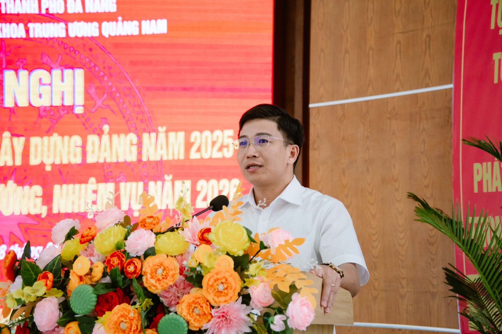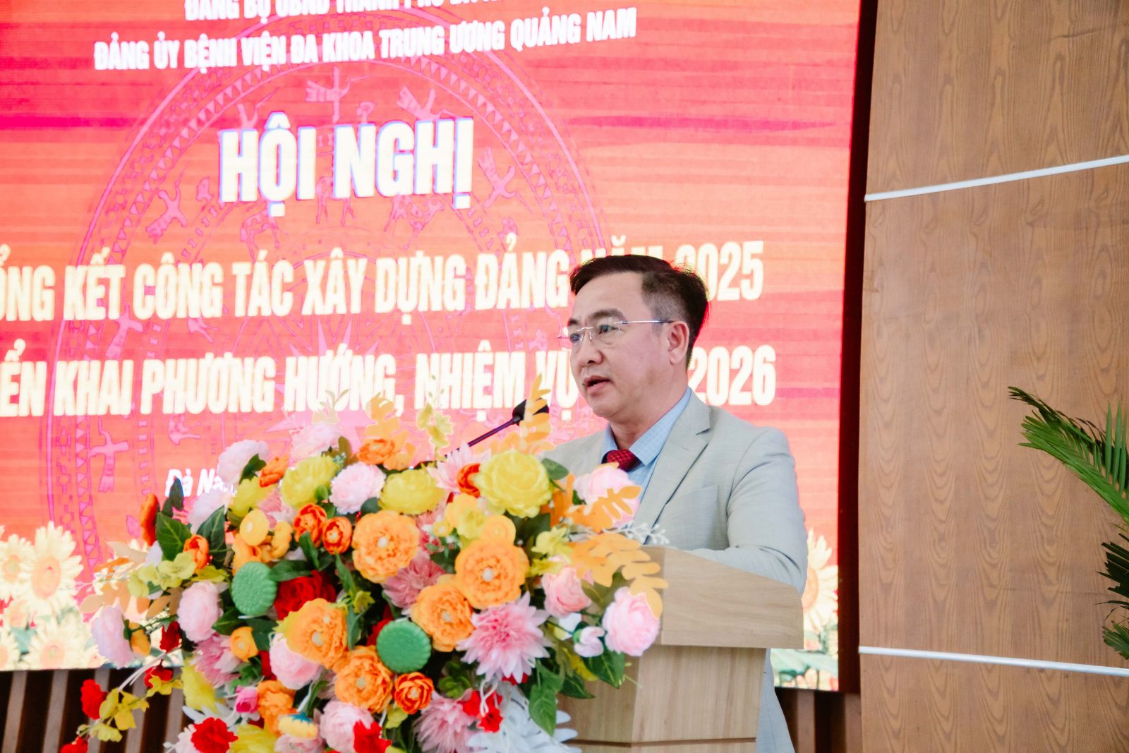 Tại Hội nghị, Đ/c Nguyễn Đình Hùng – Bí thư Đảng ủy, Giám đốc Bệnh viện đã trình bày Báo cáo tổng kết công tác xây dựng Đảng năm 2025 và phương hướng, nhiệm vụ năm 2026. Báo cáo nêu rõ: dưới sự chỉ đạo trực tiếp, thường xuyên của Đảng ủy UBND thành phố Đà Nẵng, trong năm 2025, Đảng ủy Bệnh viện Đa khoa Trung ương Quảng Nam đã tập trung lãnh đạo, chỉ đạo triển khai đồng bộ các mặt công tác xây dựng Đảng, gắn chặt công tác xây dựng Đảng với thực hiện nhiệm vụ chính trị, chuyên môn của đơn vị.