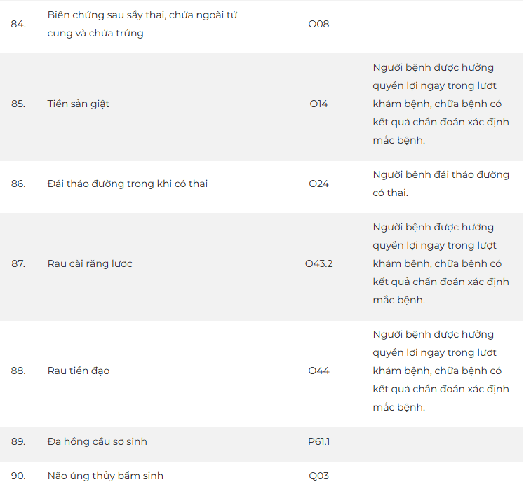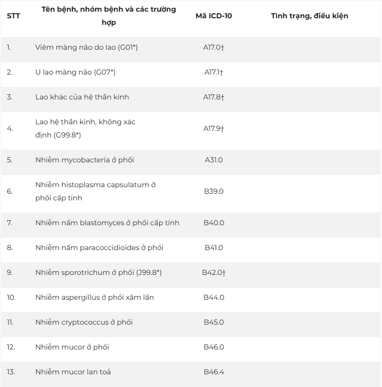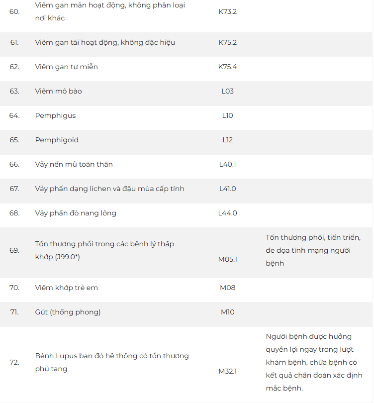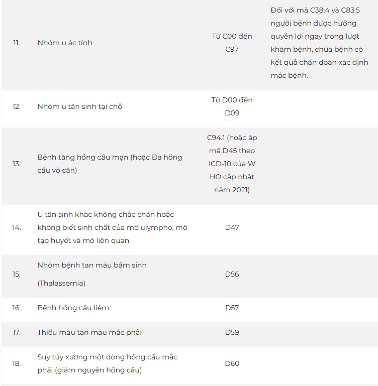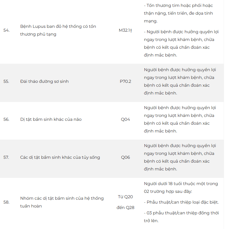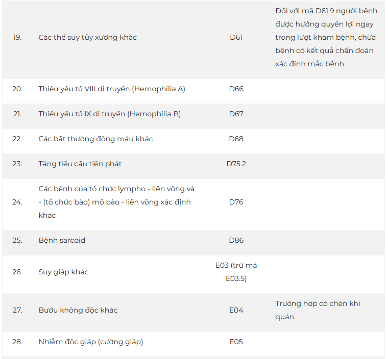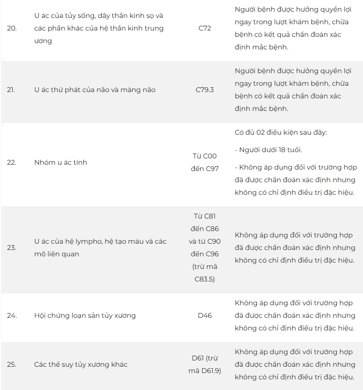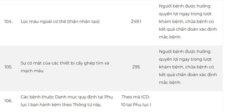 Lưu ý: người bệnh cần cung cấp các bằng chứng chứng minh bản thân đang mắc bệnh thuộc danh mục bệnh tại Phụ lục I và Phụ lục II (được ghi tại Giấy ra viện/ sổ khám bệnh/...). Trường hợp không cung cấp được bằng chứng, người bệnh sẽ được hưởng BHYT sau khi có kết quả khám xác định mắc bệnh thuộc danh mục bệnh đã quy định.