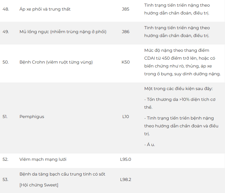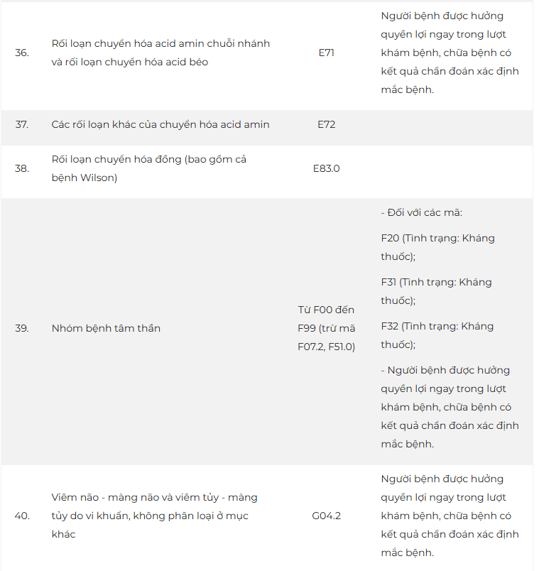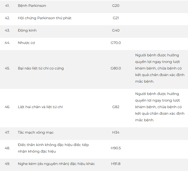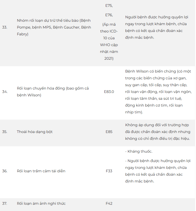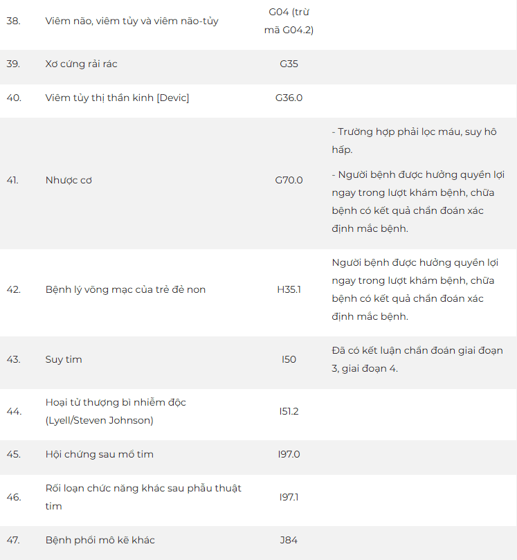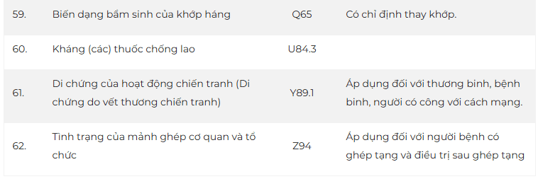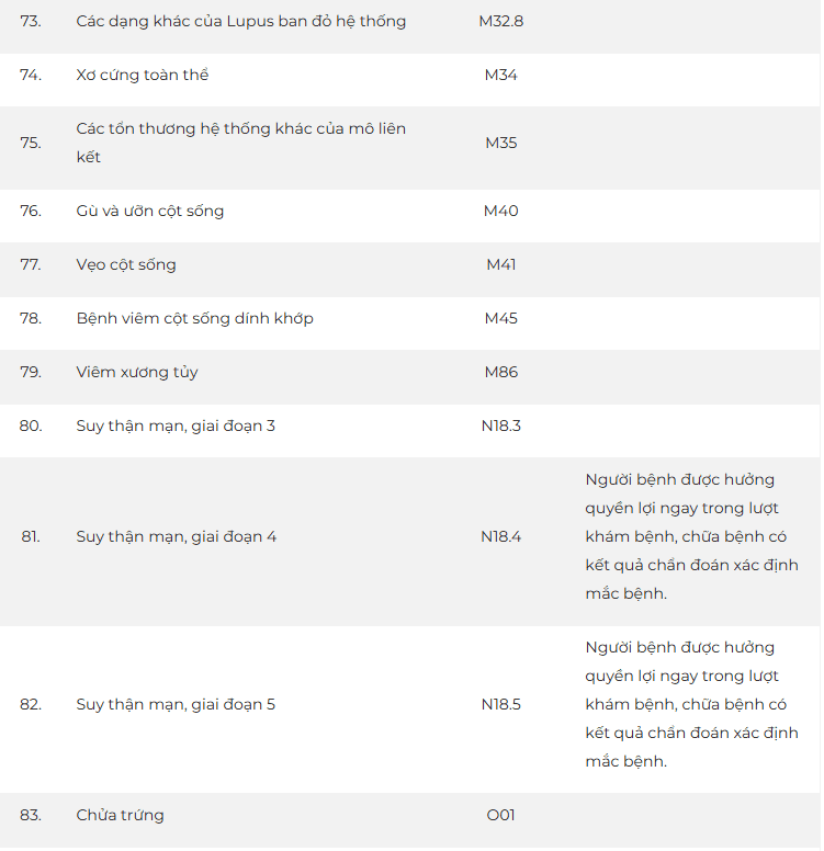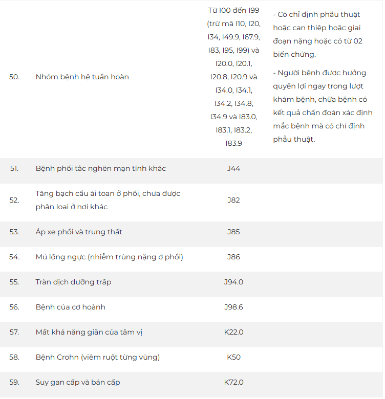 Lưu ý: người bệnh cần cung cấp các bằng chứng chứng minh bản thân đang mắc bệnh thuộc danh mục bệnh tại Phụ lục I và Phụ lục II (được ghi tại Giấy ra viện/ sổ khám bệnh/...). Trường hợp không cung cấp được bằng chứng, người bệnh sẽ được hưởng BHYT sau khi có kết quả khám xác định mắc bệnh thuộc danh mục bệnh đã quy định.