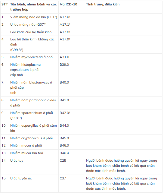 Danh mục 62 bệnh được chuyển tuyến Trung ương, hưởng 100% BHYT