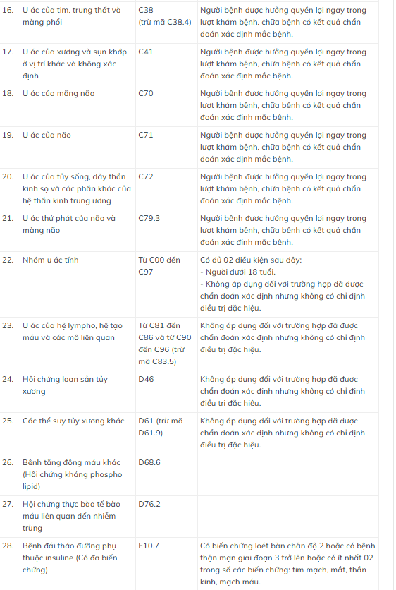 Thông tư Bộ Y tế vừa ban hành quy định chi tiết và hướng dẫn về 62 bệnh hiếm, bệnh hiểm nghèo, bệnh cần phẫu thuật hoặc sử dụng kỹ thuật cao không cần giấy chuyển viện, người bệnh vẫn được hưởng BHYT 100% như quy định.