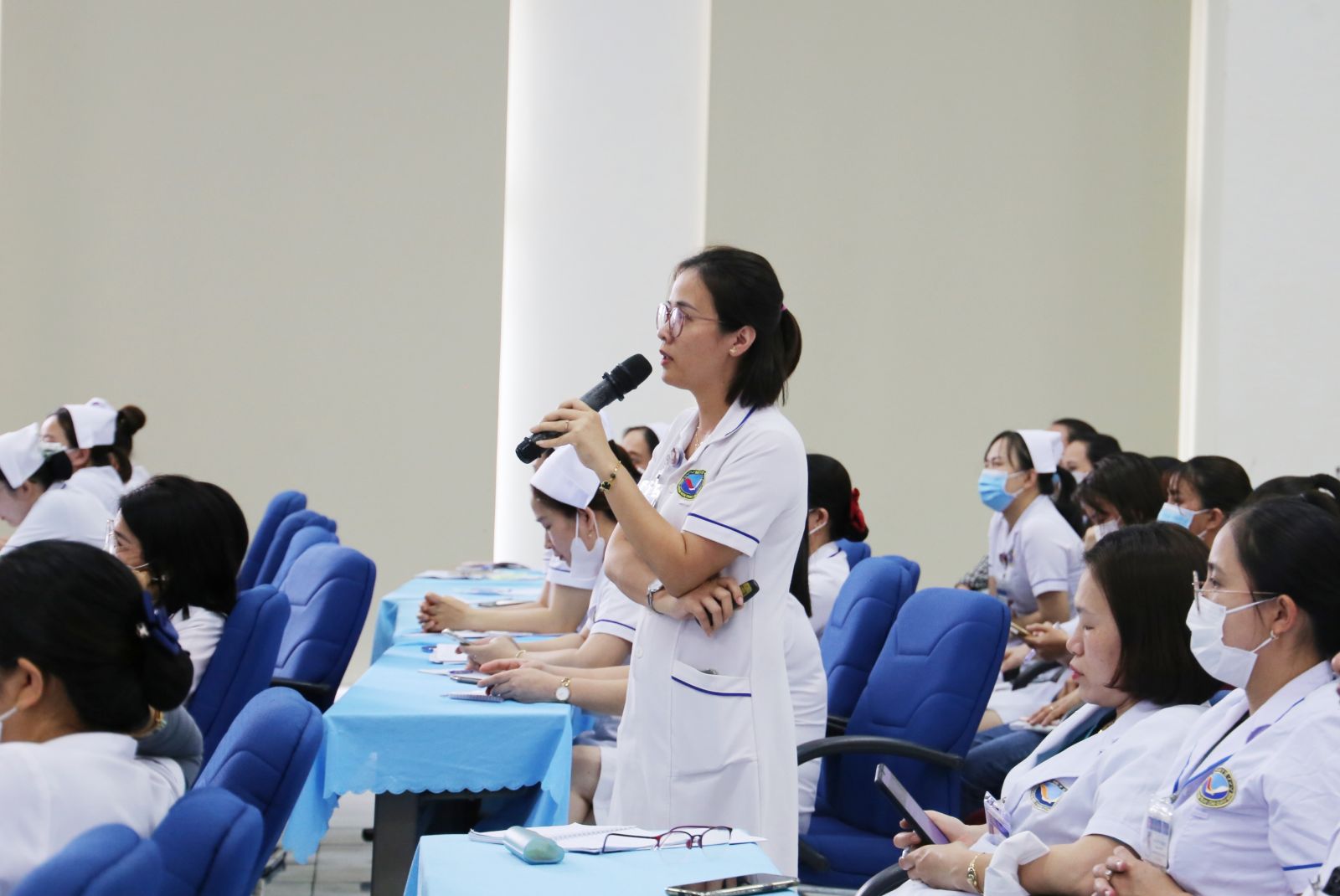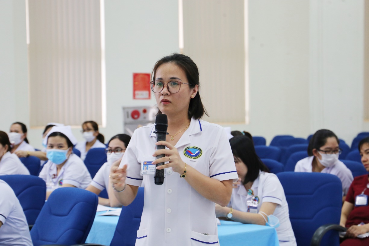 Tham gia lớp đào tạo có gần 50 học viên là các Điều dưỡng trưởng, Hộ sinh trưởng, Kỹ thuật viên trưởng và điều dưỡng hành chính các khoa lâm sàng, cận lâm sàng toàn viện.