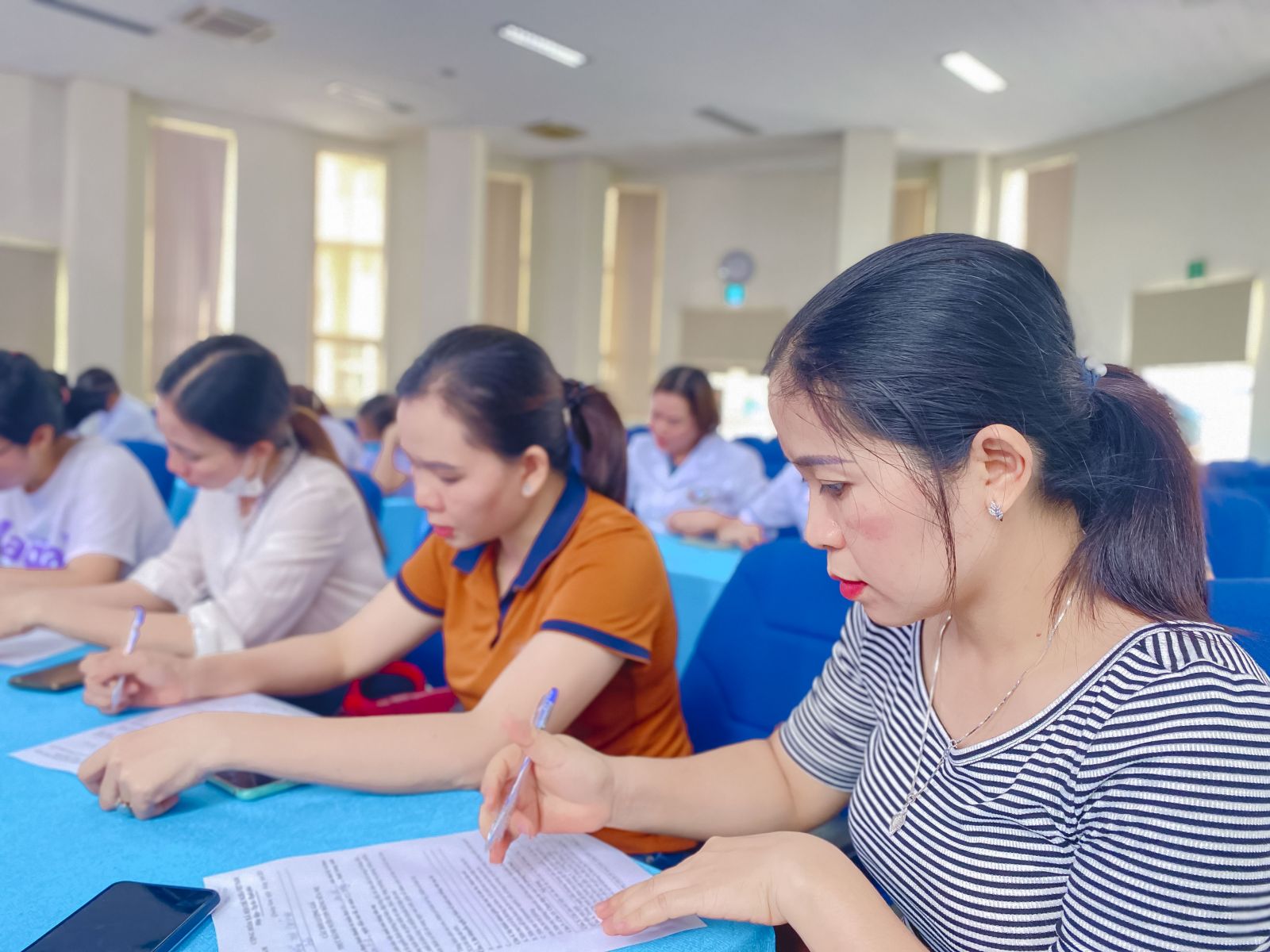 Học viên thực hiện làm bài test đầu vào và đầu ra tại khóa đào tạo.