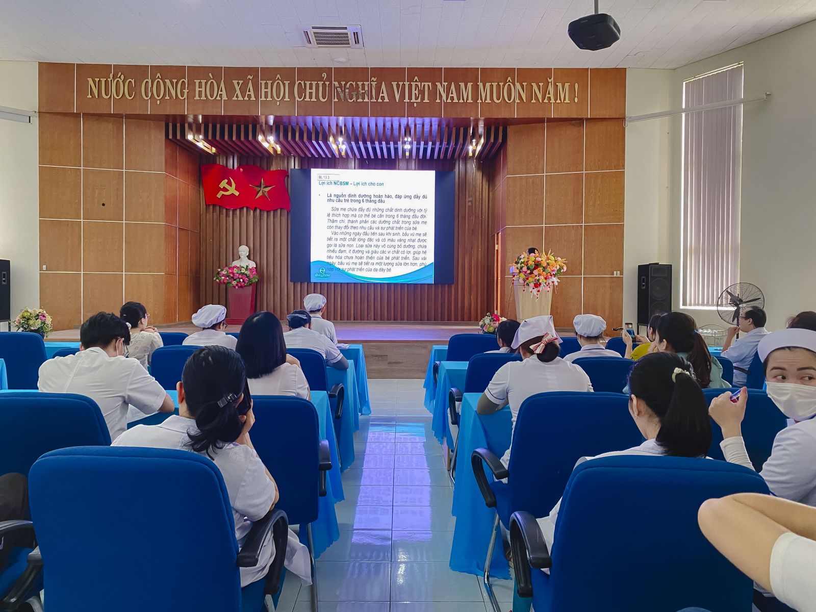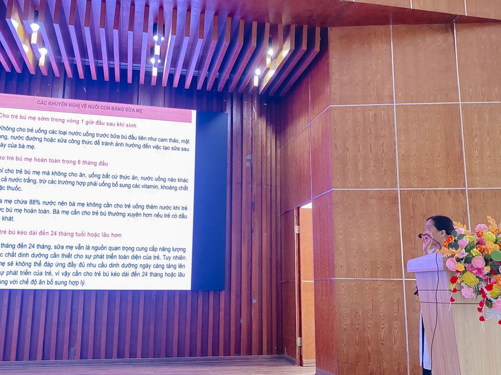 Theo đó, các học phần tập huấn về chăm sóc thiết yếu bà mẹ, trẻ sơ sinh trong và ngay sau đẻ và hướng dẫn nuôi con bằng sữa mẹ được trình bày và giảng dạy bởi BSCKII. Lý Vũ Thị Bảo Thanh - Trưởng Khoa Nhi và BSCKI. Phạm Minh Vương - Trưởng Khoa Phụ Sản.