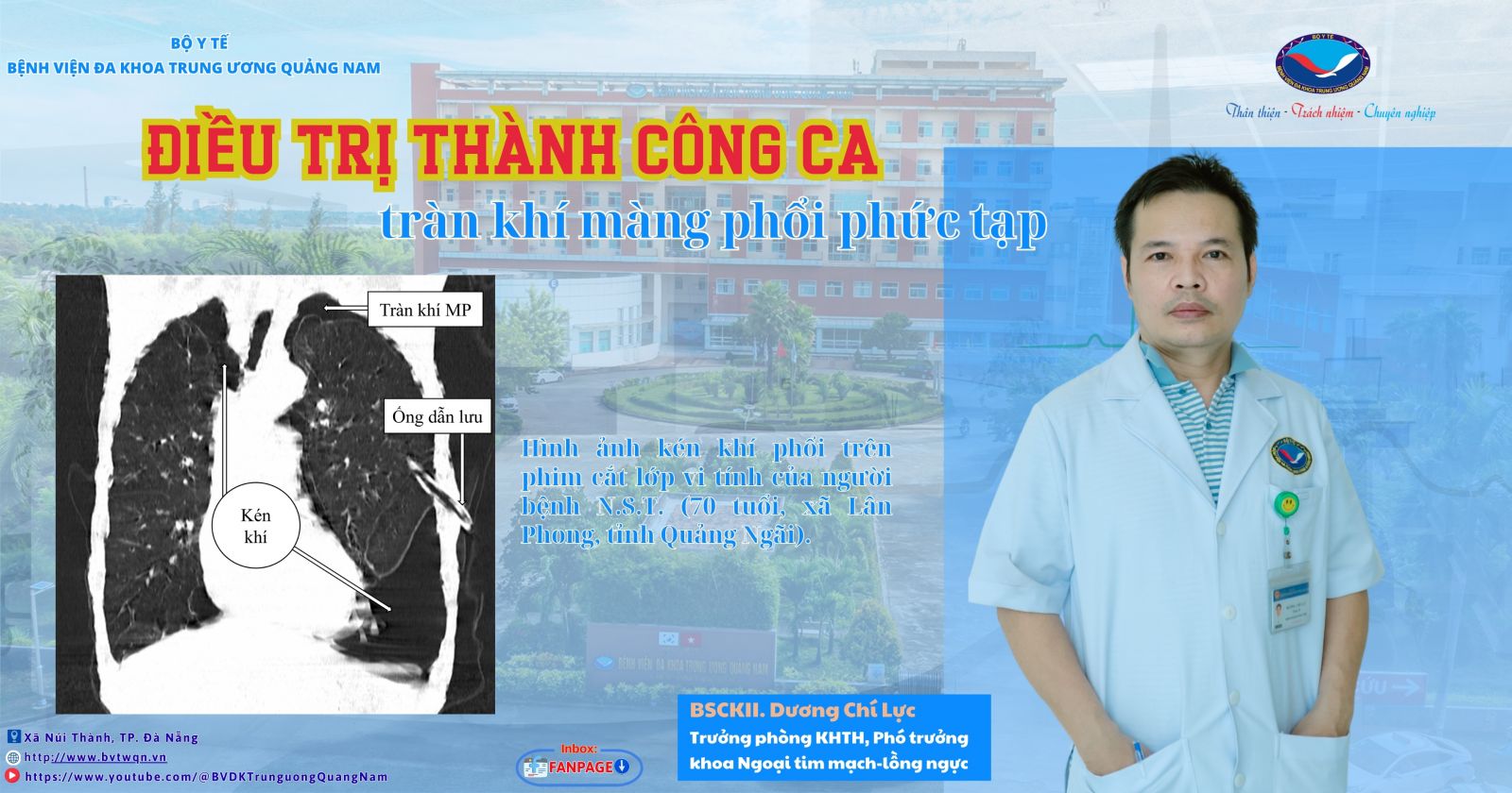 Bệnh viện Đa khoa Trung ương Quảng Nam vừa tiếp nhận người bệnh N.S.T. (70 tuổi, xã Lân Phong, tỉnh Quảng Ngãi), nhập viện trong tình trạng tràn khí màng phổi trái do kén khí vỡ, đã được đặt dẫn lưu tại cơ sở y tế địa phương nhưng sau 5 ngày vẫn không hết xì khí.