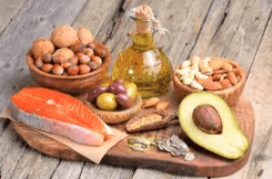 Lựa chọn các loại: Acid béo Omega-3, Omega 9 (Có thể bảo vệ người hút thuốc lá mắc COPD, có tác dụng chống viêm) hạt chia; dầu hạt cải, quả óc chó, hạt lanh các loại rau lá xanh như rau bina, bông cải xanh, cải thìa, súp lơ, dầu ô-liu, cá béo (cá hồi, cá thu), và quả bơ. Lượng dầu <30g/ ngày.