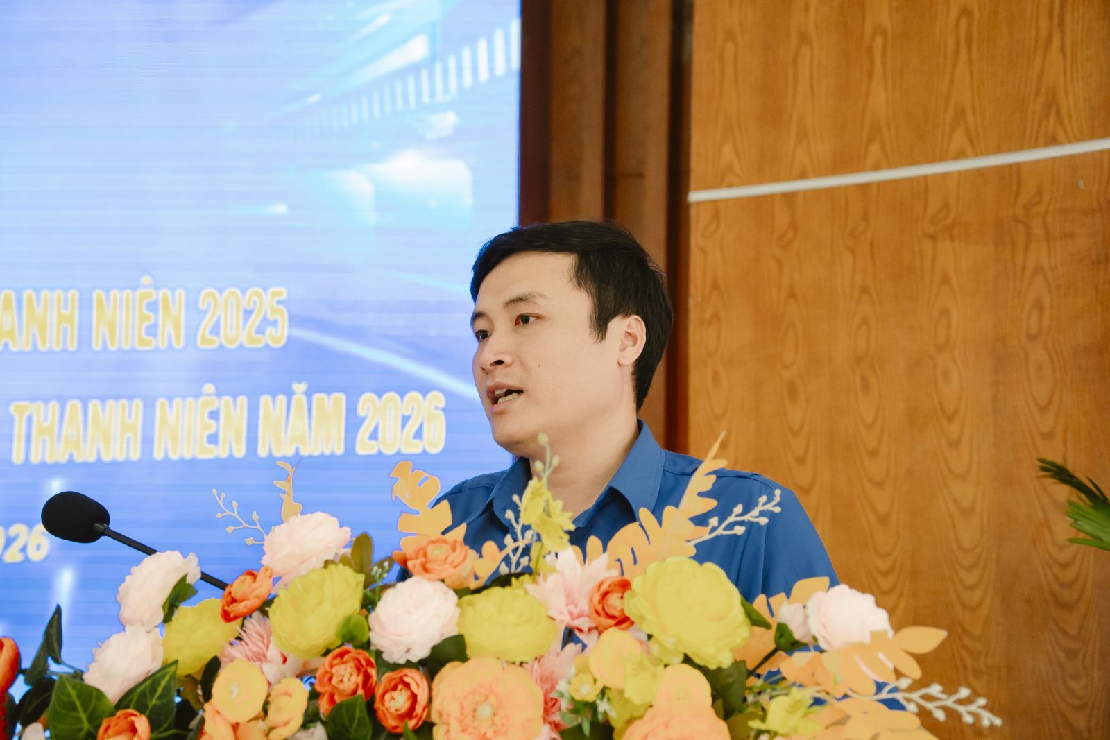 Đồng chí Nguyễn Ngọc Vạn, Phó Bí thư Đoàn thanh niên báo cáo tổng kết 2025 và phương hướng 2026.