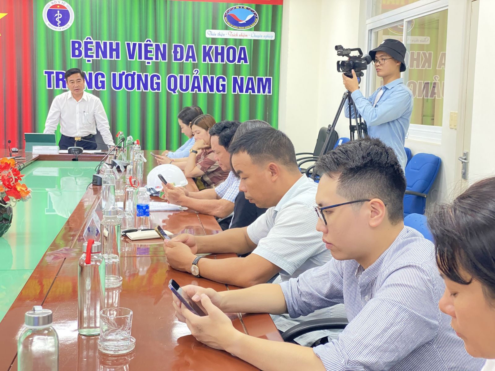 Các phóng viên phỏng vấn lãnh đạo Bệnh viện Đa khoa Trung ương Quảng Nam - BSCKII. Nguyễn Đình Hùng - Giám đốc Bệnh viện.