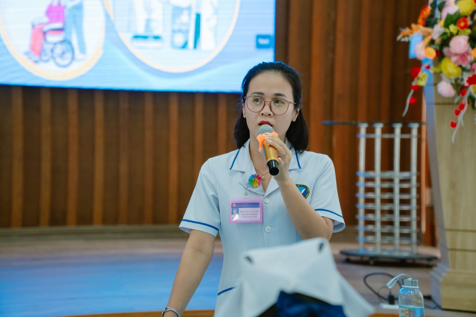 Bà Phan Trần Giang Hòa, Trưởng phòng Điều dưỡng Bệnh viện chia sẻ tại các buổi triển khai.