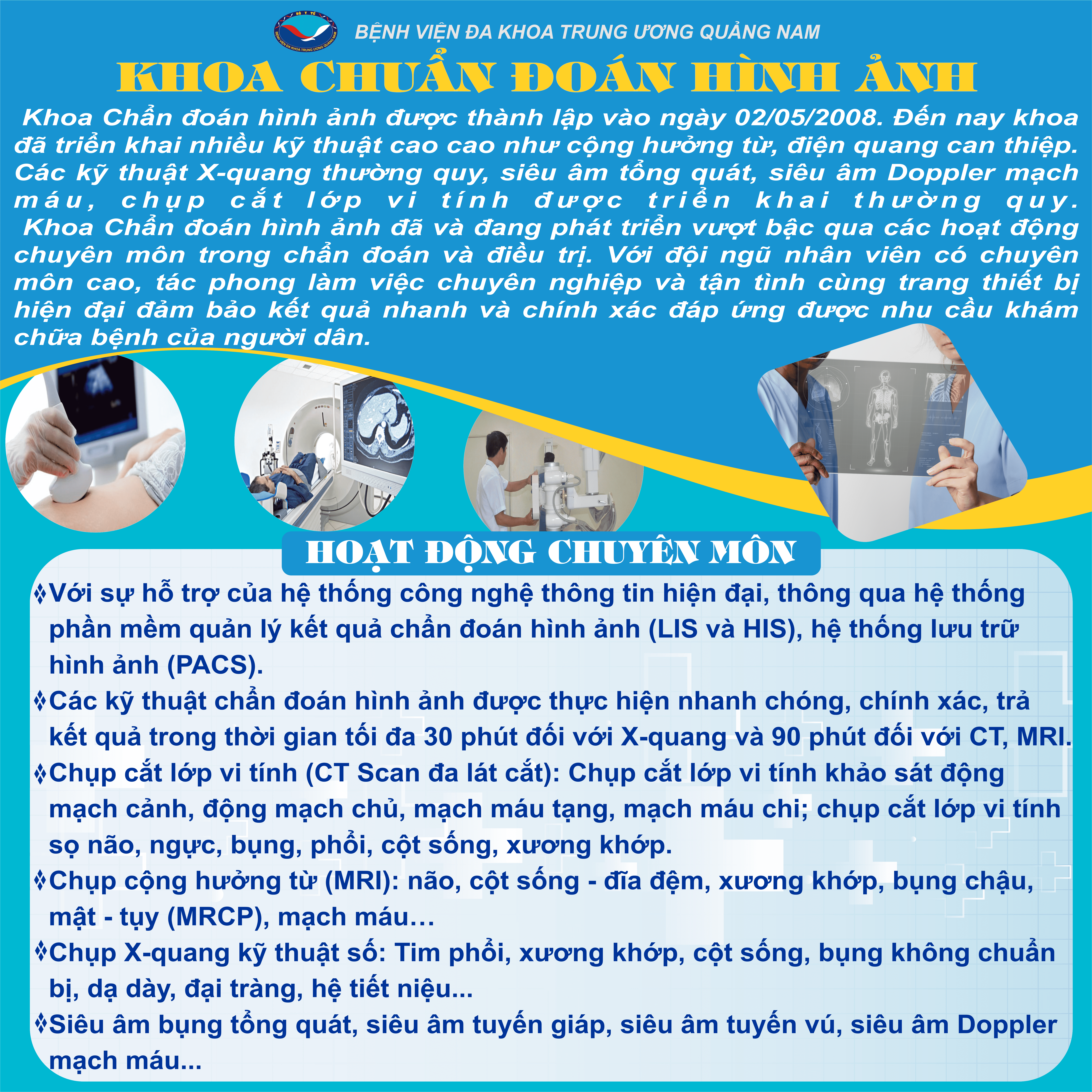 Thứ 5, 02/03/2023 | 09:45 A- A A+ | Giới thiệu về khoa Chẩn đoán hình ảnh Đọc bài Lưu Tổng số điểm của bài viết là: 1 trong 1 đánh giá Click để đánh giá bài viết
