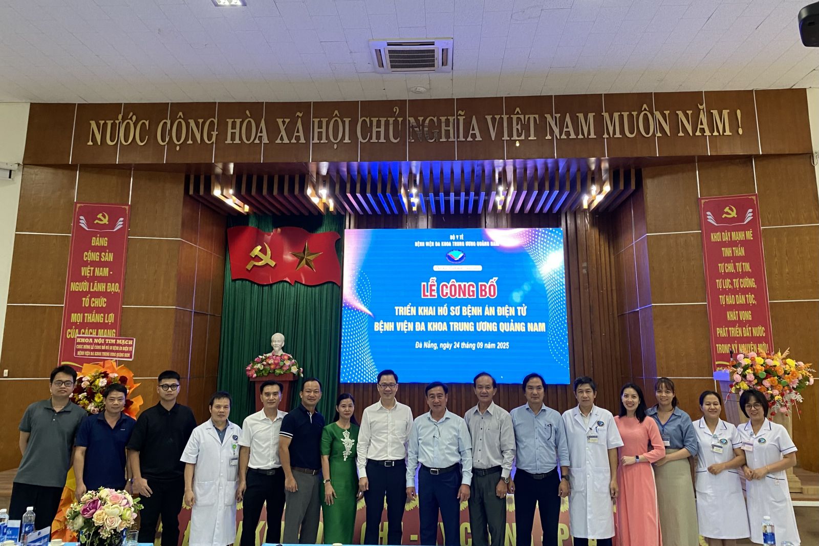 DKTWQNO - Chiều nay 24/9, tại Hội trường lớn, Bệnh viện Đa khoa Trung ương Quảng Nam tổ chức Lễ công bố Hồ sơ Bệnh án điện tử (HSBAĐT), đánh dấu bước ngoặt quan trọng trong hành trình chuyển đổi số y tế, mang đến nhiều lợi ích thiết thực cho người dân và nhân viên y tế.