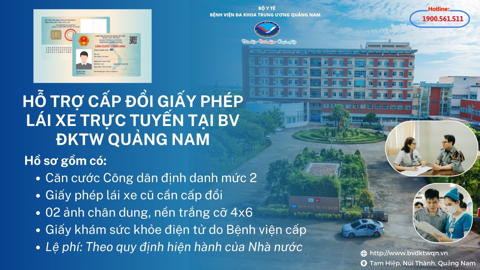 Hỗ trợ cấp đổi giấy phép lái xe trực tuyến tại Bệnh viện Đa khoa Trung ương Quảng Nam