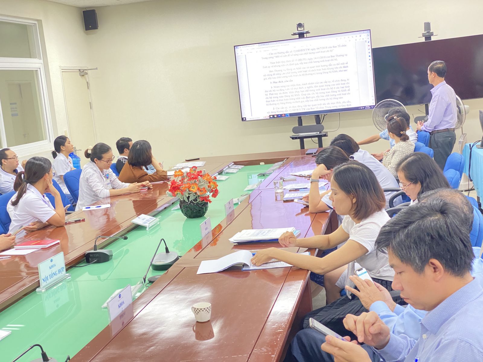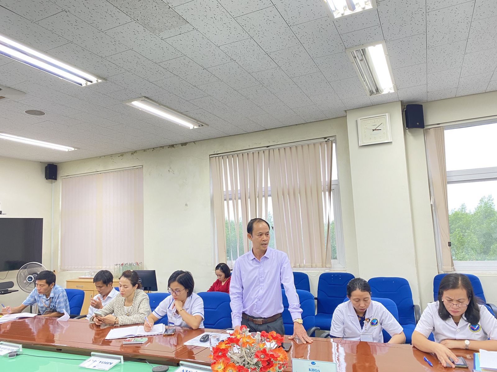 Đại diện UBKT Đảng uỷ Bệnh viện, đồng chí Nguyễn Văn Huyên thông qua dự thảo báo cáo tổng kết công tác kiểm tra giám sát trong năm 2023 và phương hướng nhiệm vụ công tác kiểm tra giám sát trong năm 2024.