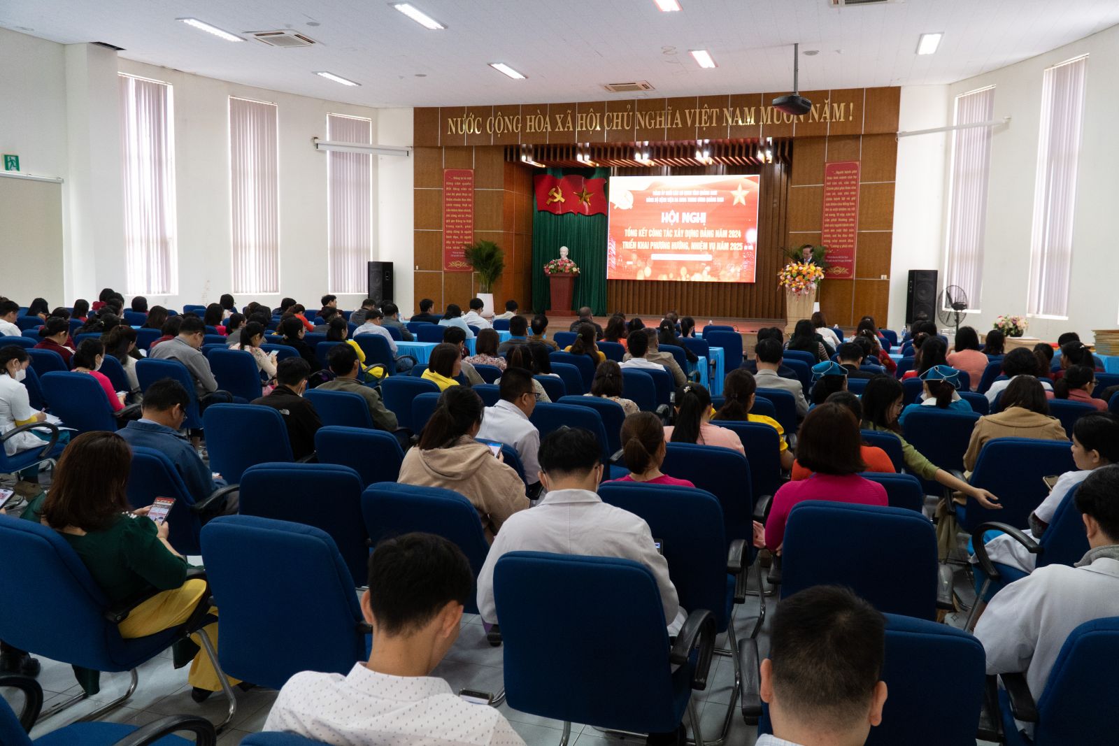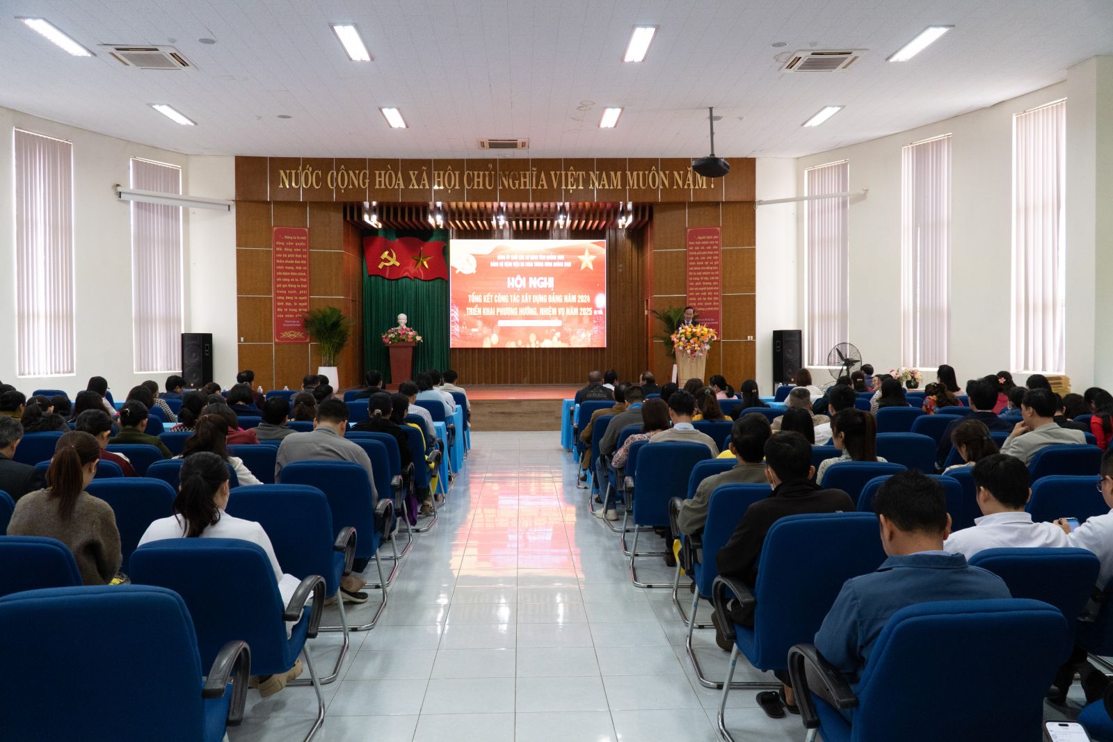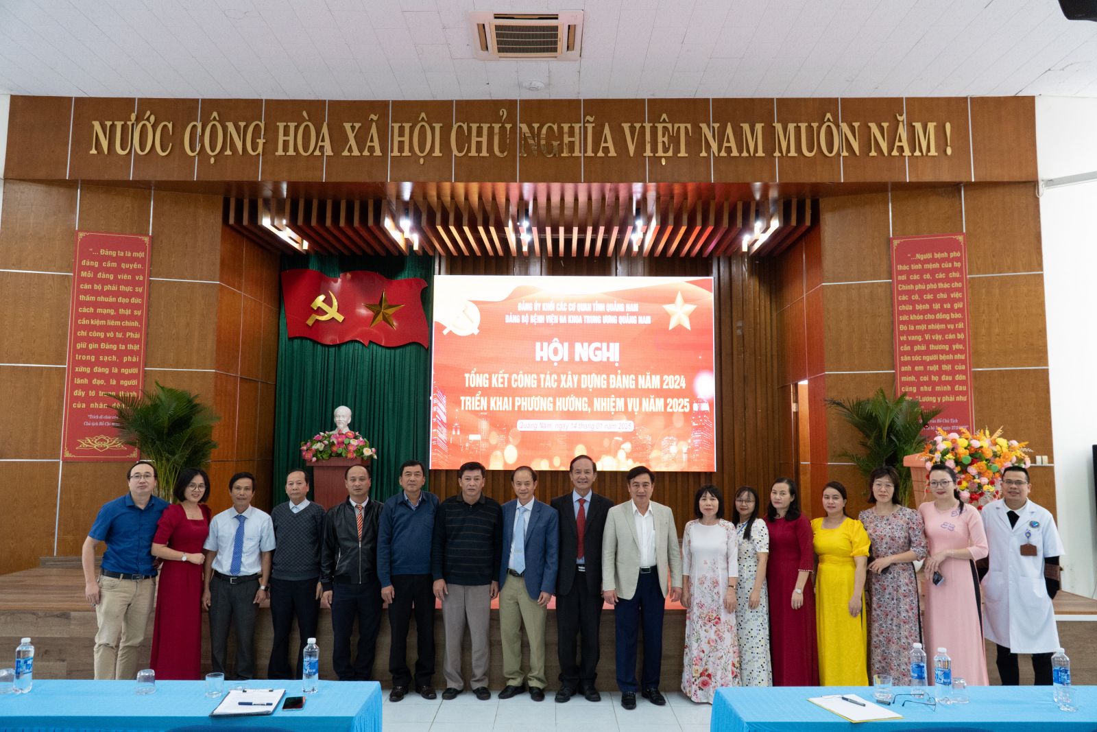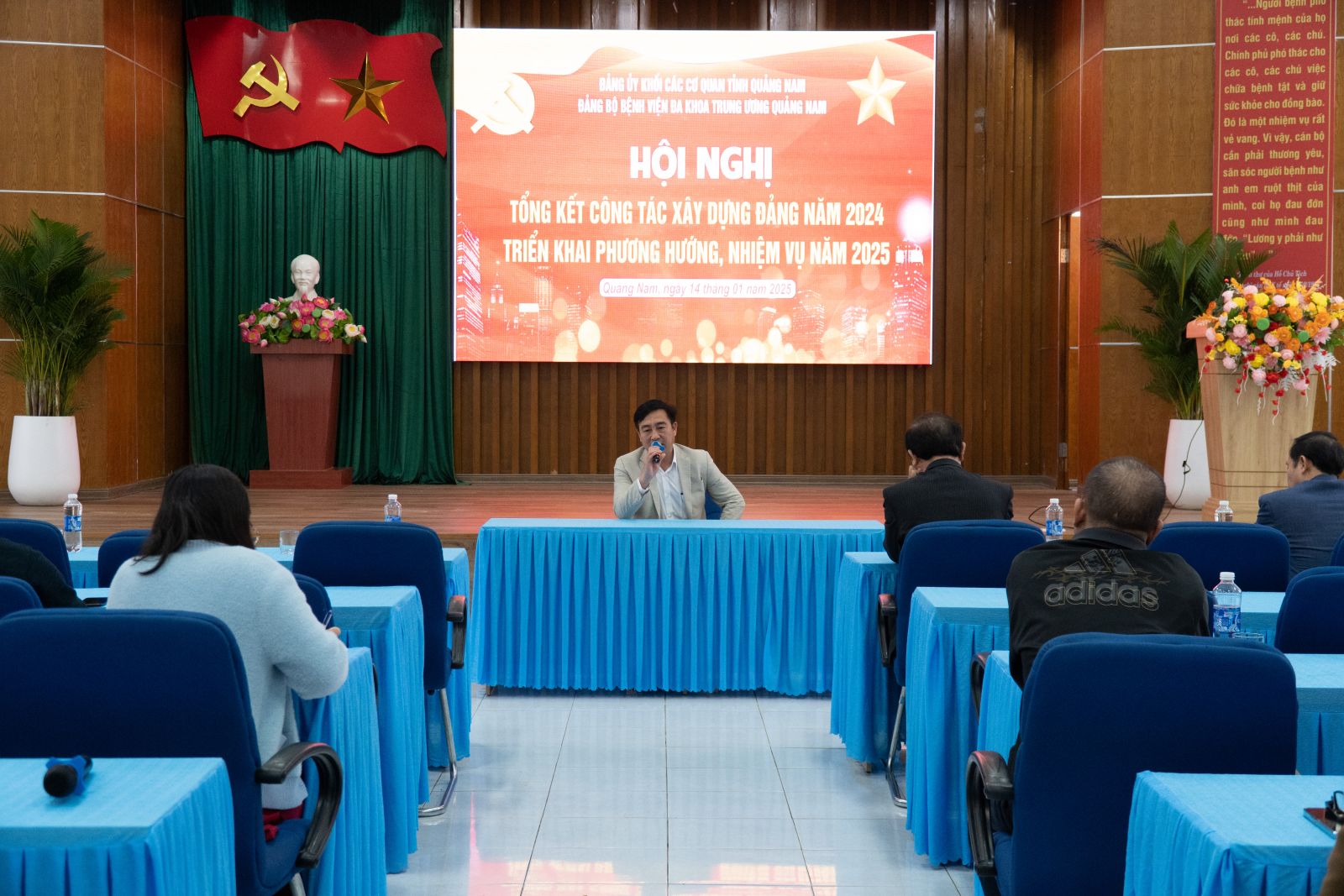Sáng nay 14/01/2025, Đảng bộ Bệnh viện đa khoa Trung ương Quảng Nam tổ chức hội nghị Tổng kết công tác xây dựng Đảng năm 2024 và triển khai phương hướng, nhiệm vụ năm 2025. Đồng chí BSCKII. Nguyễn Đình Hùng - Bí thư Đảng uỷ, Giám đốc Bệnh viện chủ trì hội nghị.