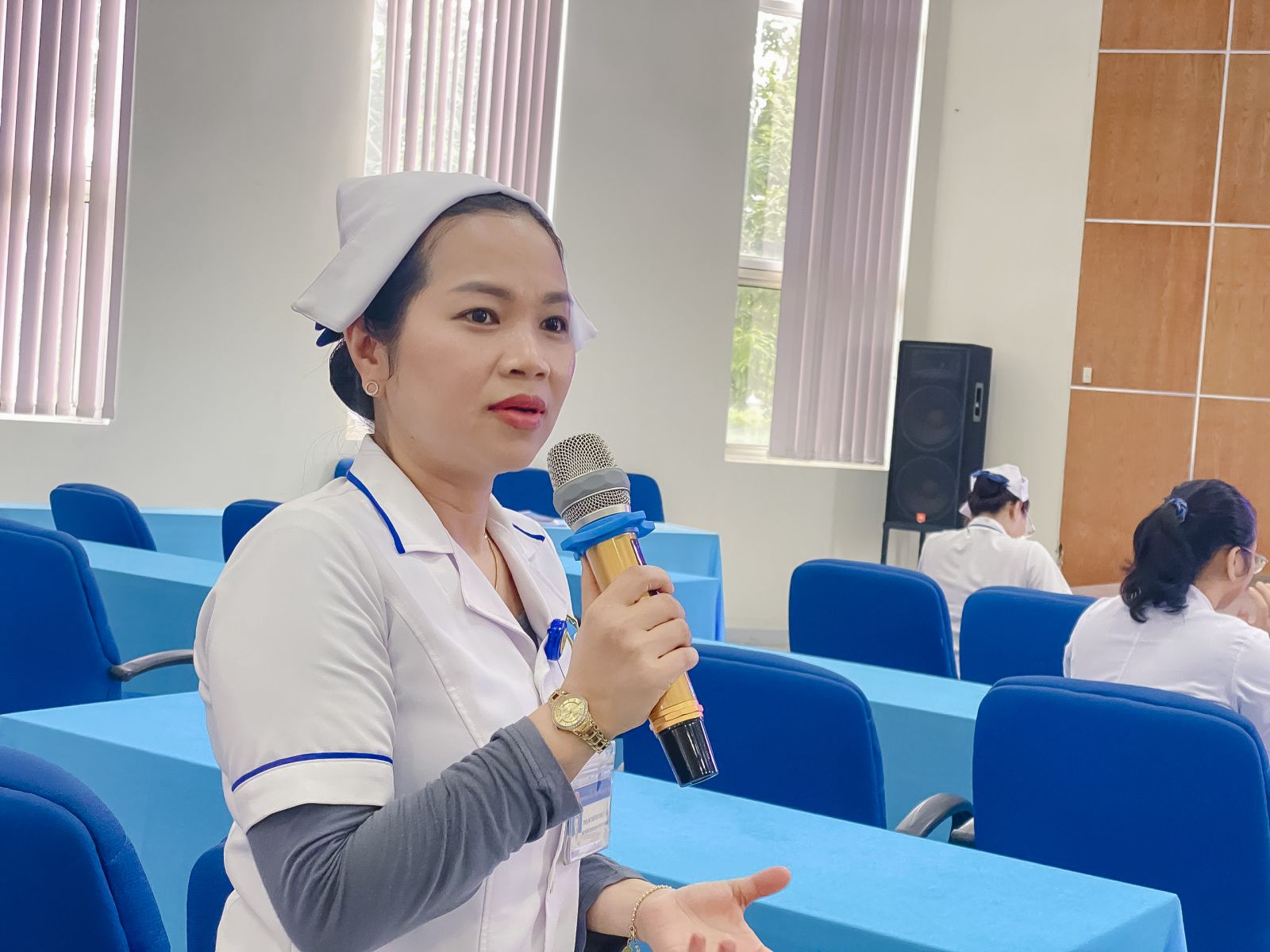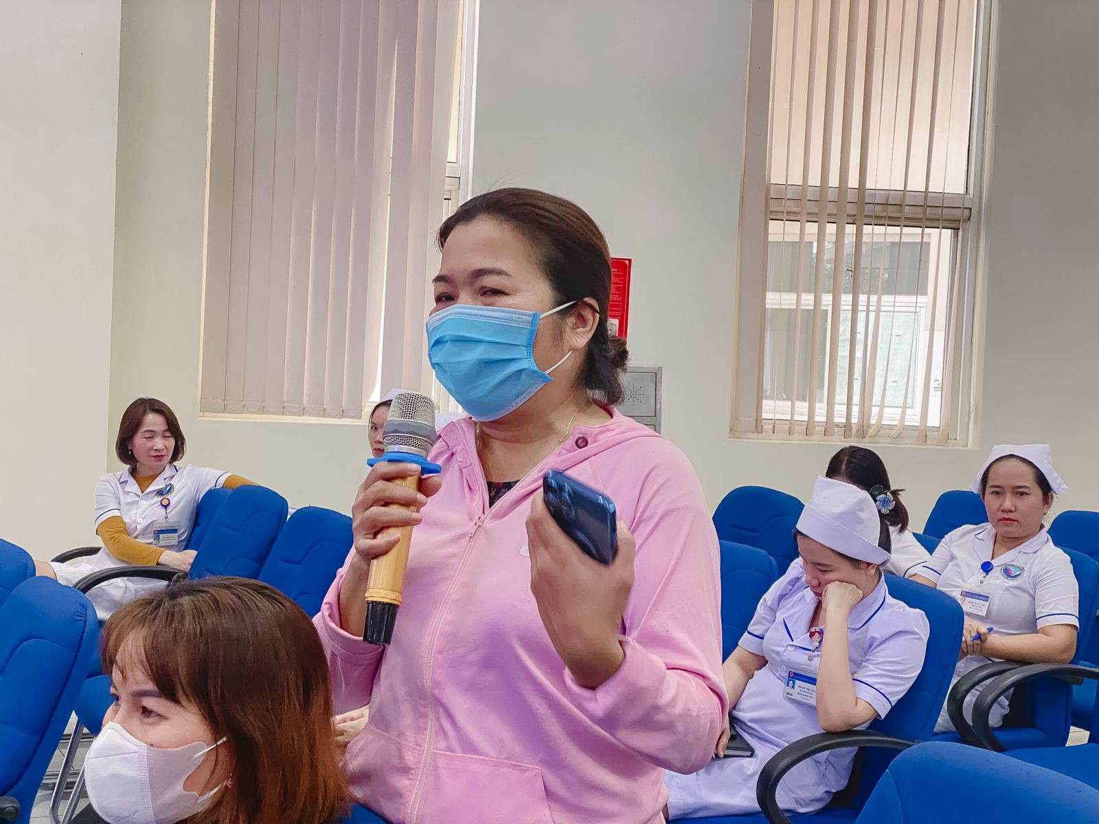 CN. Phan Trần Giang Hoà - Trưởng Phòng Điều Dưỡng ghi nhận những ý kiến của người bệnh tại buổi họp.