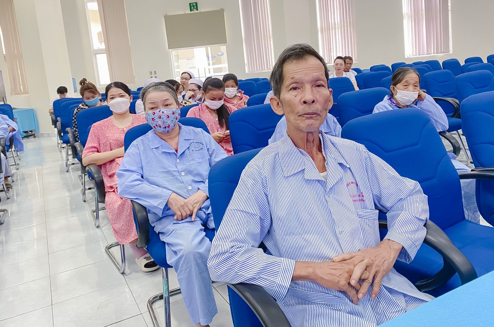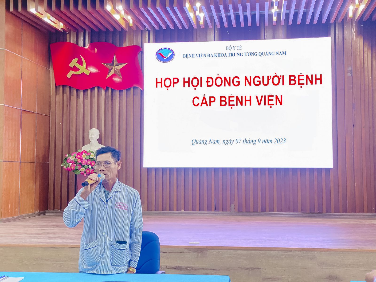 Tham dự buổi họp Hội đồng người bệnh cấp Bệnh viện có đại diện của Phòng Điều dưỡng, Khoa Dinh Dưỡng; về phía người bệnh gồm: Chủ tọa buổi họp là ông Phan Đình Lộ, người bệnh và người nhà người bệnh đại diện cho người bệnh của các khoa lâm sàng trong viện.